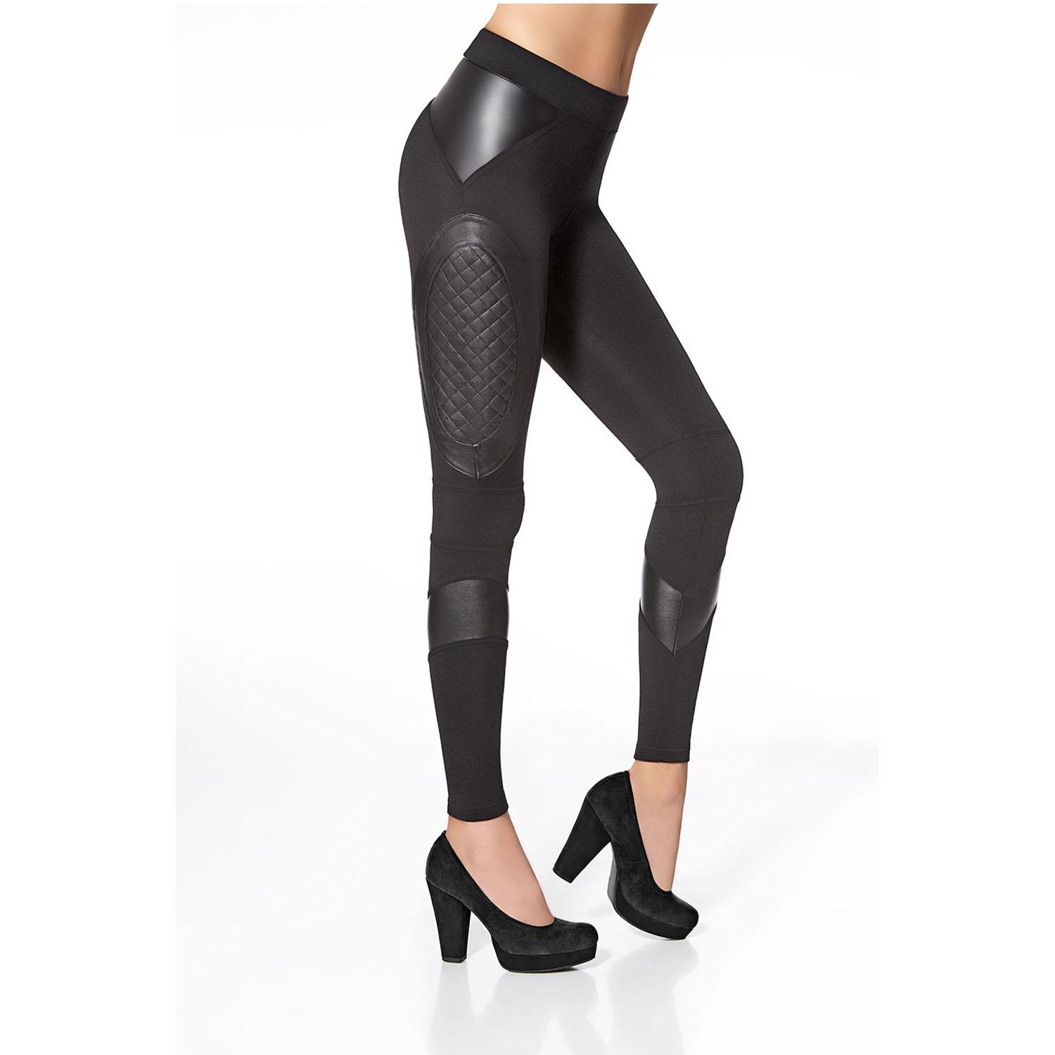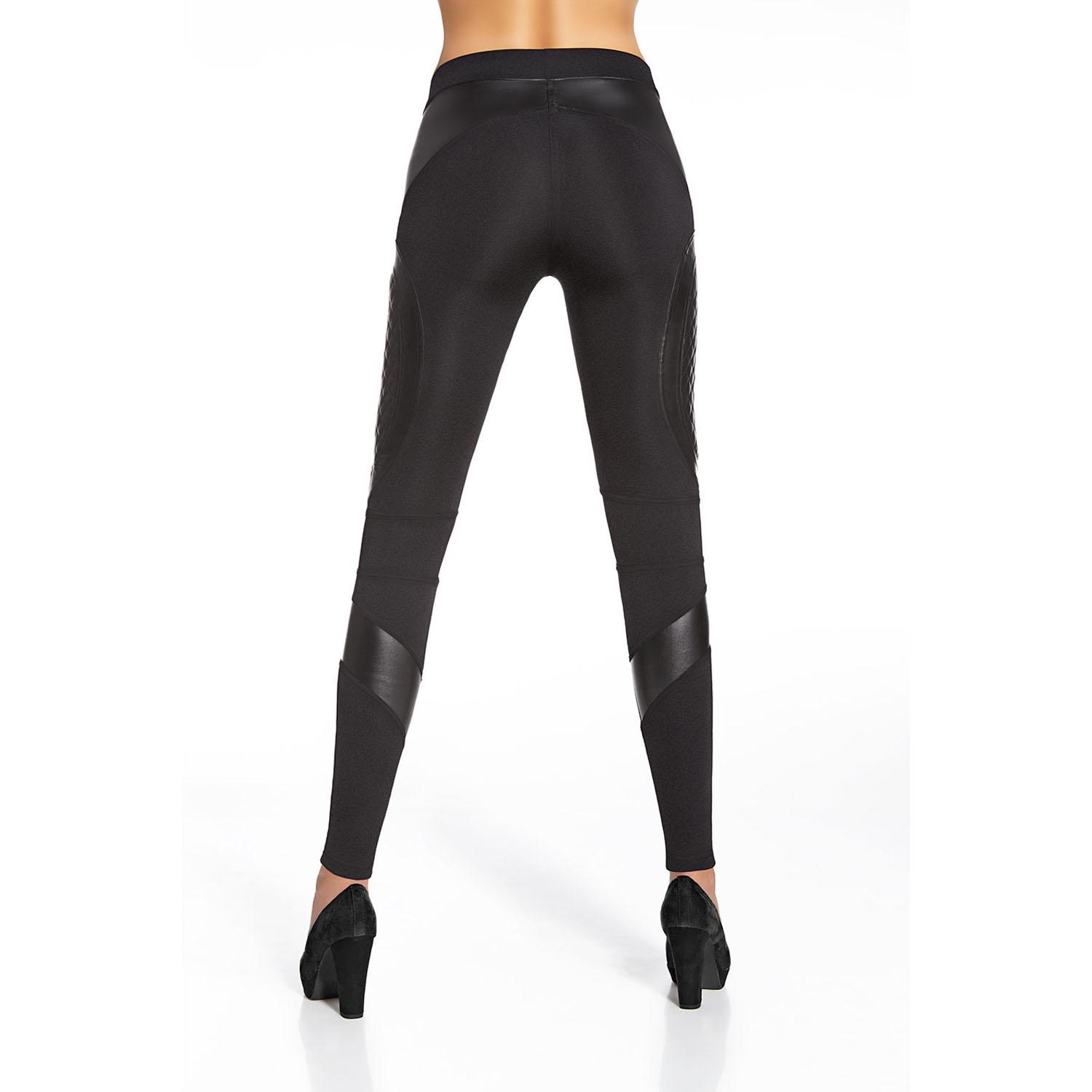 Фантазийные леггинсы 200 Den, оформленные вставками под кожу. Вставки на наружной части бедер оформлены стежками. Модель смотрится очень необычно!