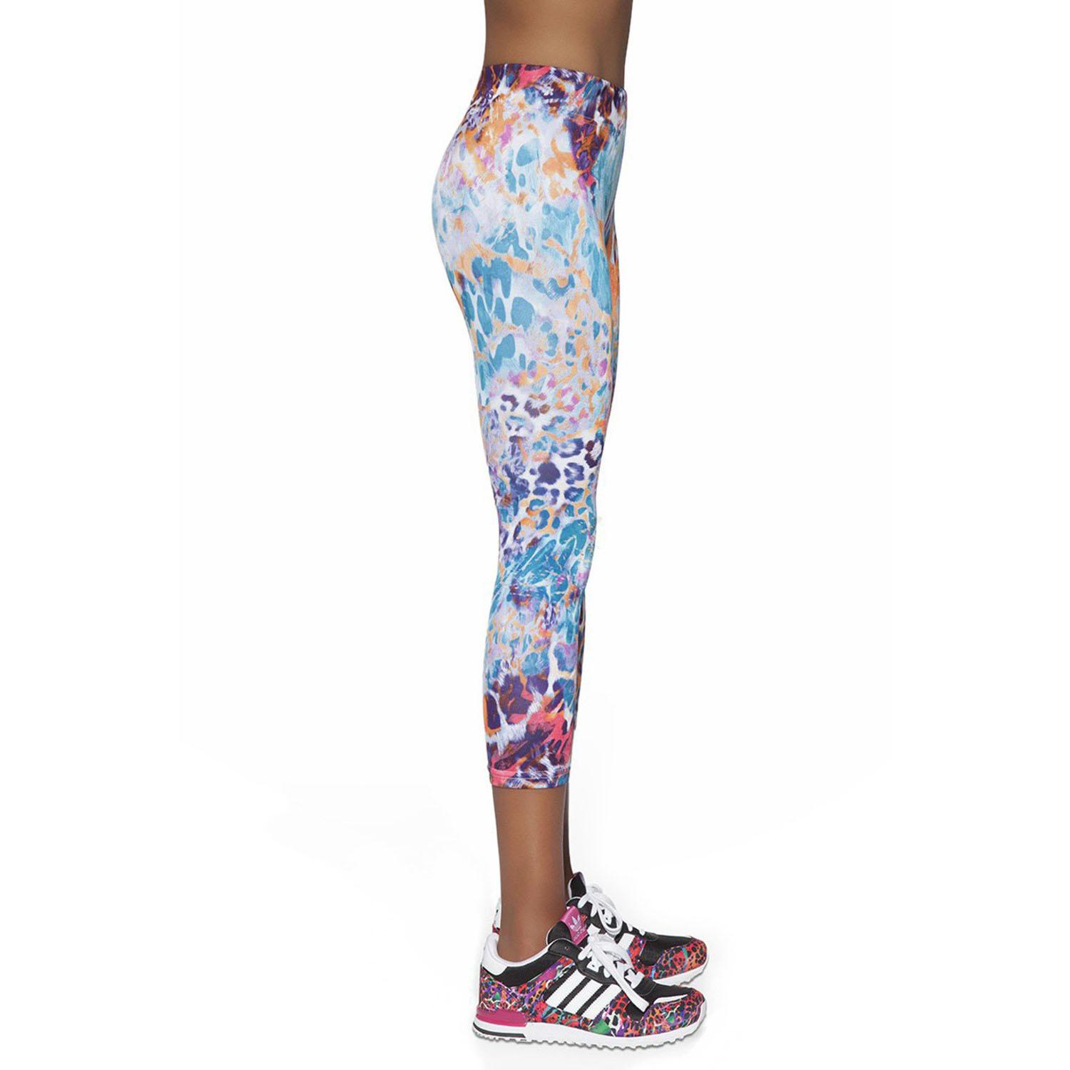 Леггинсы-бриджи плотностью 200 Den, оформленные ярким принтом. Модель предназначена для фитнеса и обладает корректирующим эффектом. Обработка волокон материала способствует улучшенной циркуляции воздуха и быстрому выводу влаги.