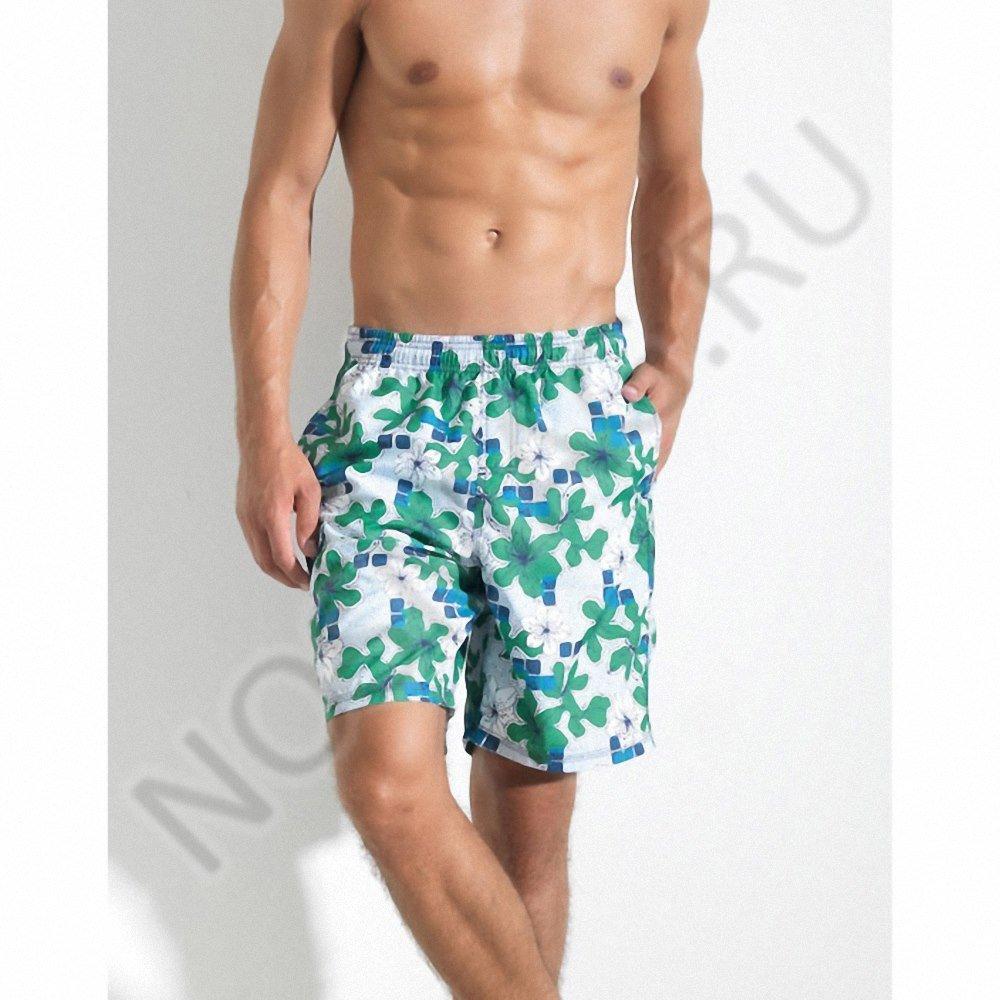 Яркие мужские пляжные шорты в гавайском стиле. Модель имеет характерный принт, который хорошо сочетается с рубашками и футболками. Шорты имеют боковые карманы, а также пояс с резинкой и кулиской.