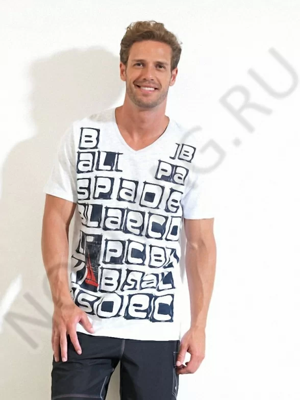Стильная футболка с V-образным вырезом горловины. Модный принт отлично сочетается с любой летней одеждой. Футболка сделана из тонкого, приятного к телу хлопка.