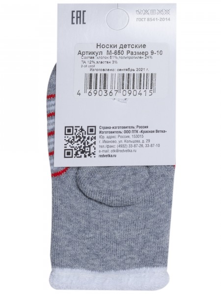 Детские носки из 100% хлопка "Борисоглебский трикотаж"