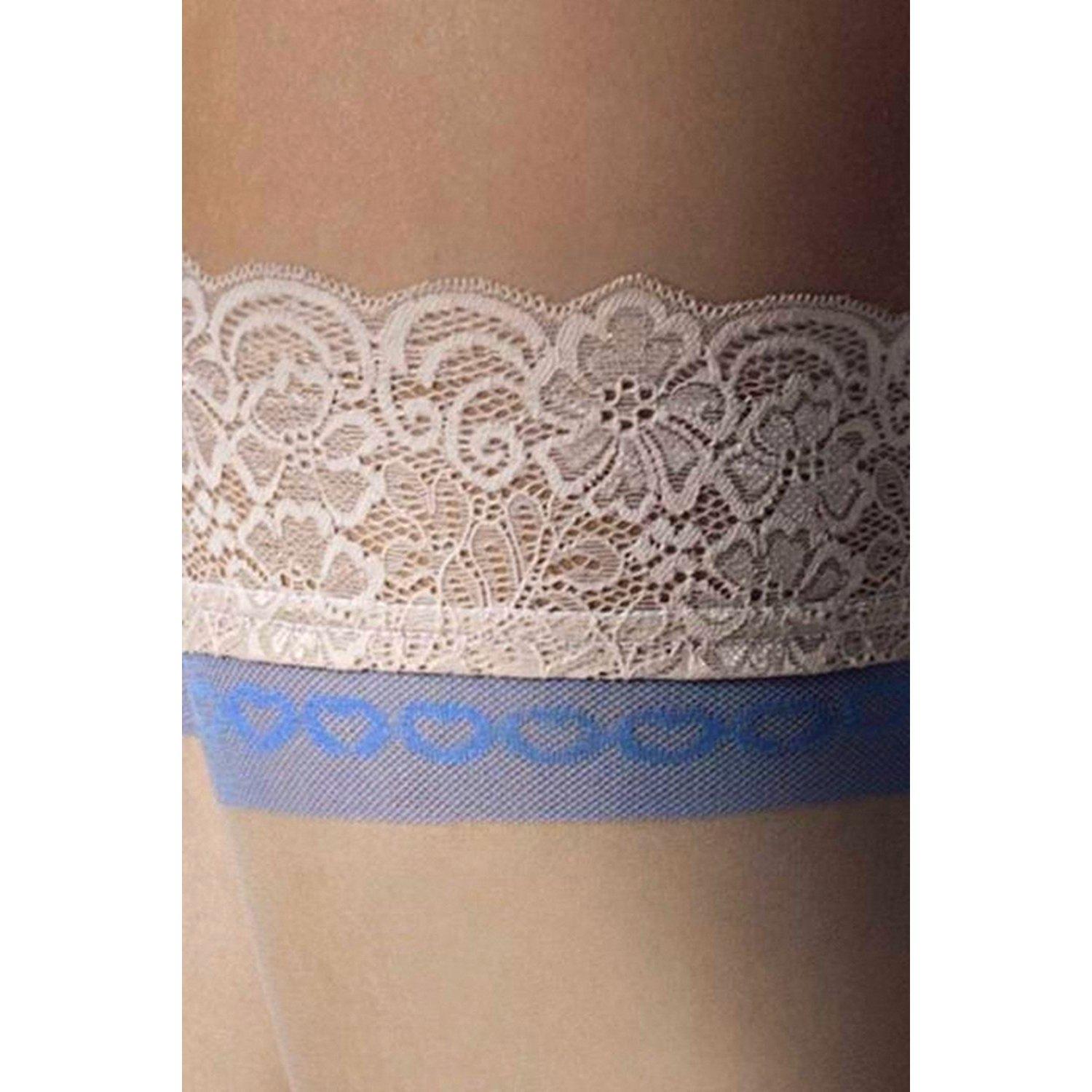 Необычные матовые чулки на кружевной коронке с силиконовой резинкой, обеспечивающей идеальную фиксацию. Они дополнены милой голубой полоской и смотрятся очень женственно. Уникальная в своем роде модель!