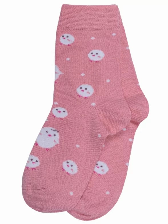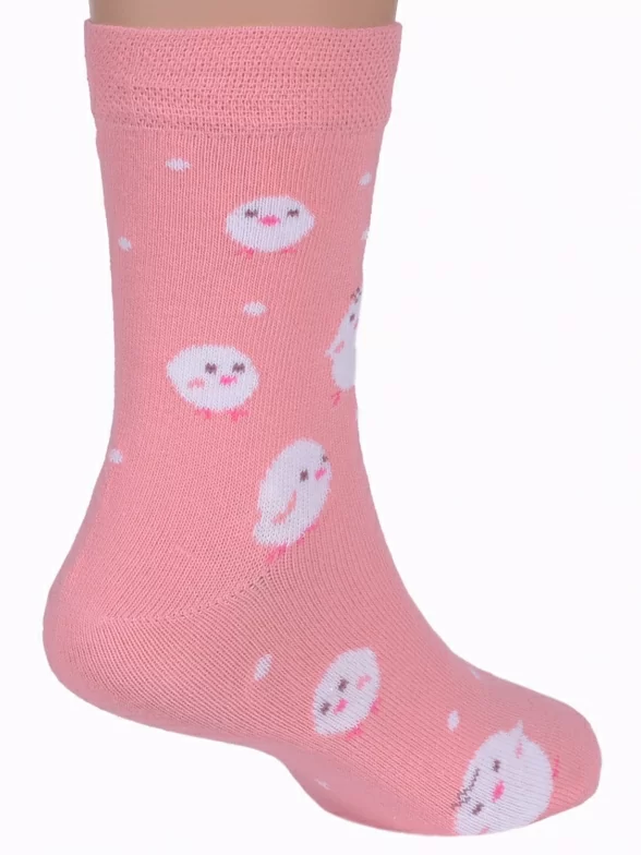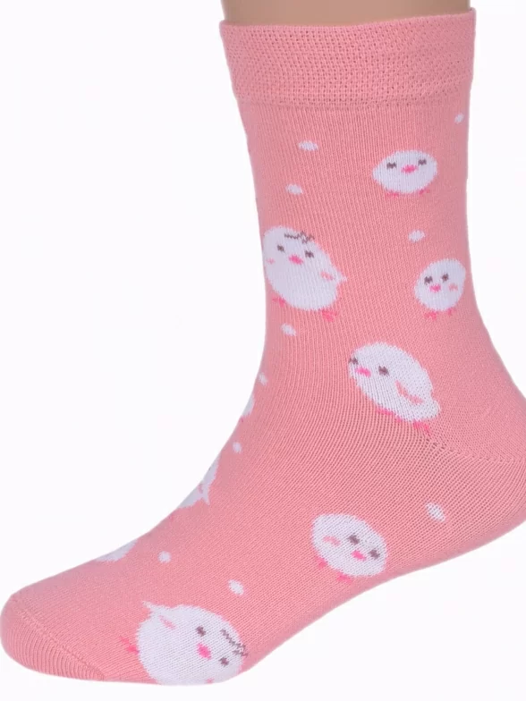 Детские носки связаны из хлопка с добавлением полиамида и эластана. Модель от Бресткого Чулочного Комбината украшена принтом в виде цыплят.