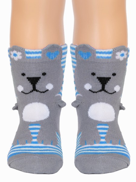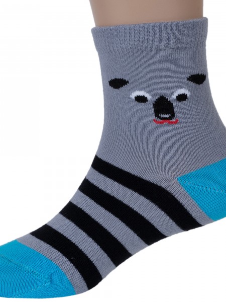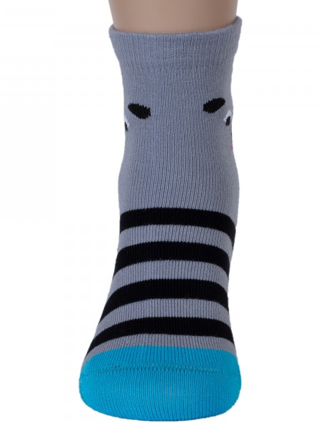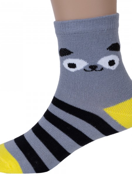 Детские носки с полосками и изображением панды. Связаны на российской фабрике "Красная ветка" (Иваново). На 73% состоят из хлопка, что позволяет коже дышать целый день. Полиамид и эластан делают изделие более плотным, износостойким и хорошо тянущимся.