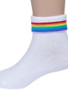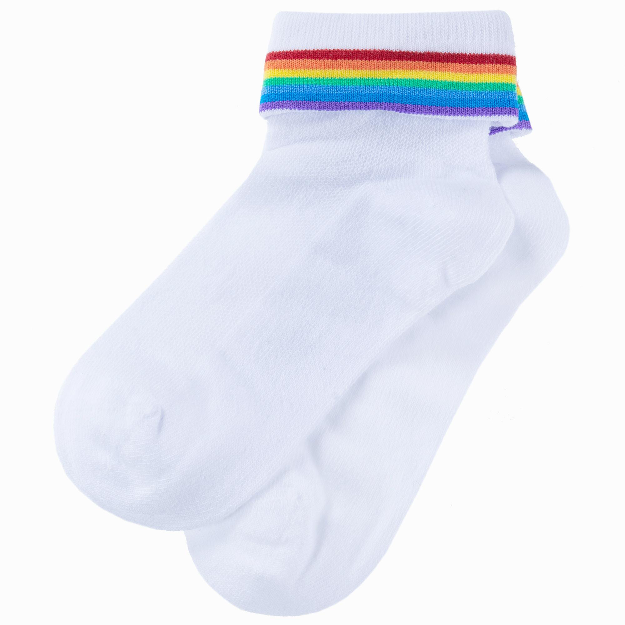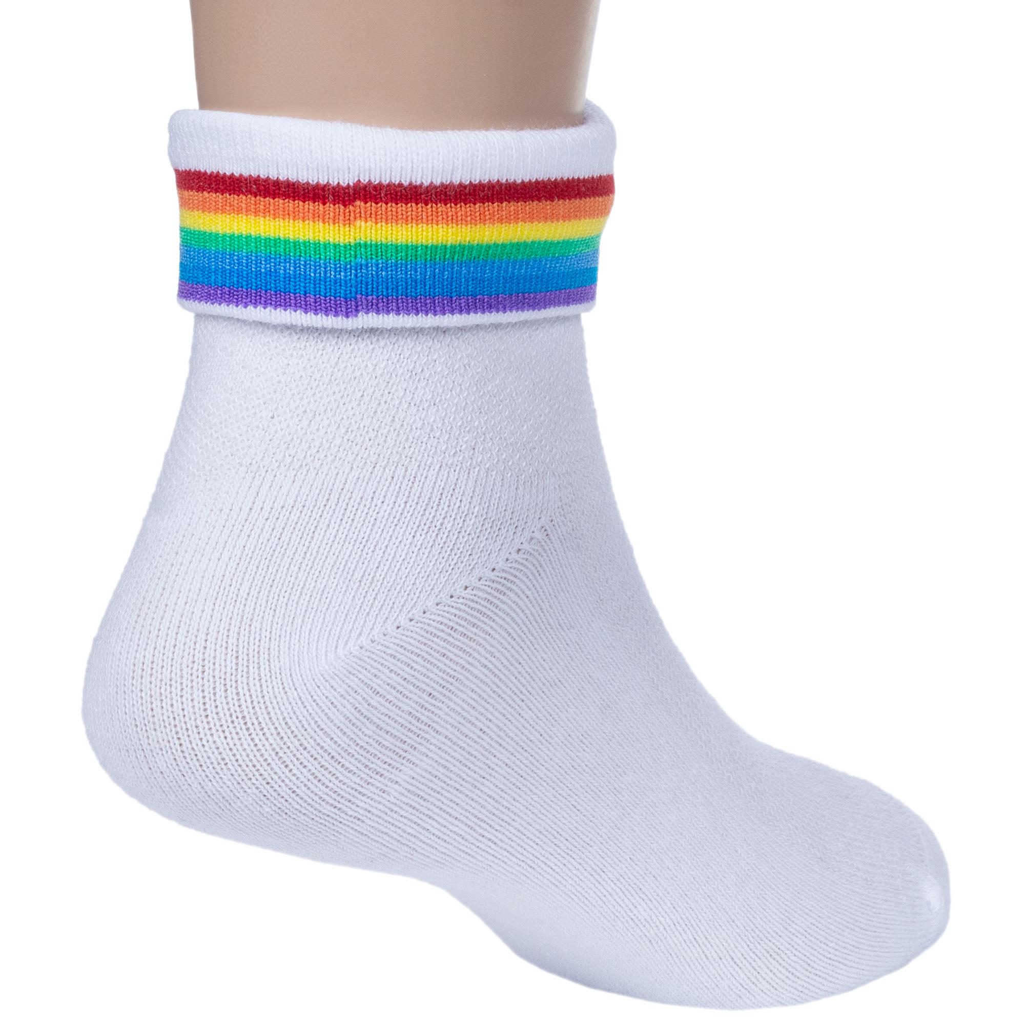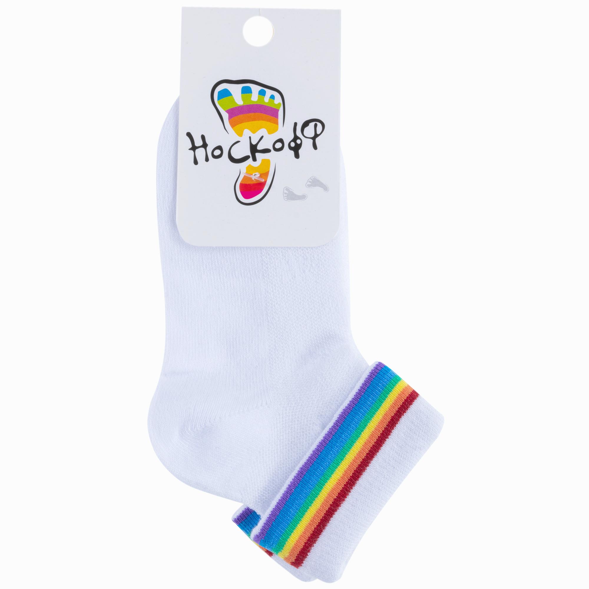 Летние короткие детские носки, цвет белый, в сеточку, спортивные, с отворотом, шов обычный (не бесшовные), принт (рисунок): контрастные пятка / мысок / резинка, с узором, состав: 67% хлопок, 30% полиамид, 3% полиуретан (эластан), арт. НД15. Производитель «Носкофф» Россия под брендом «Носкофф (алсу)».