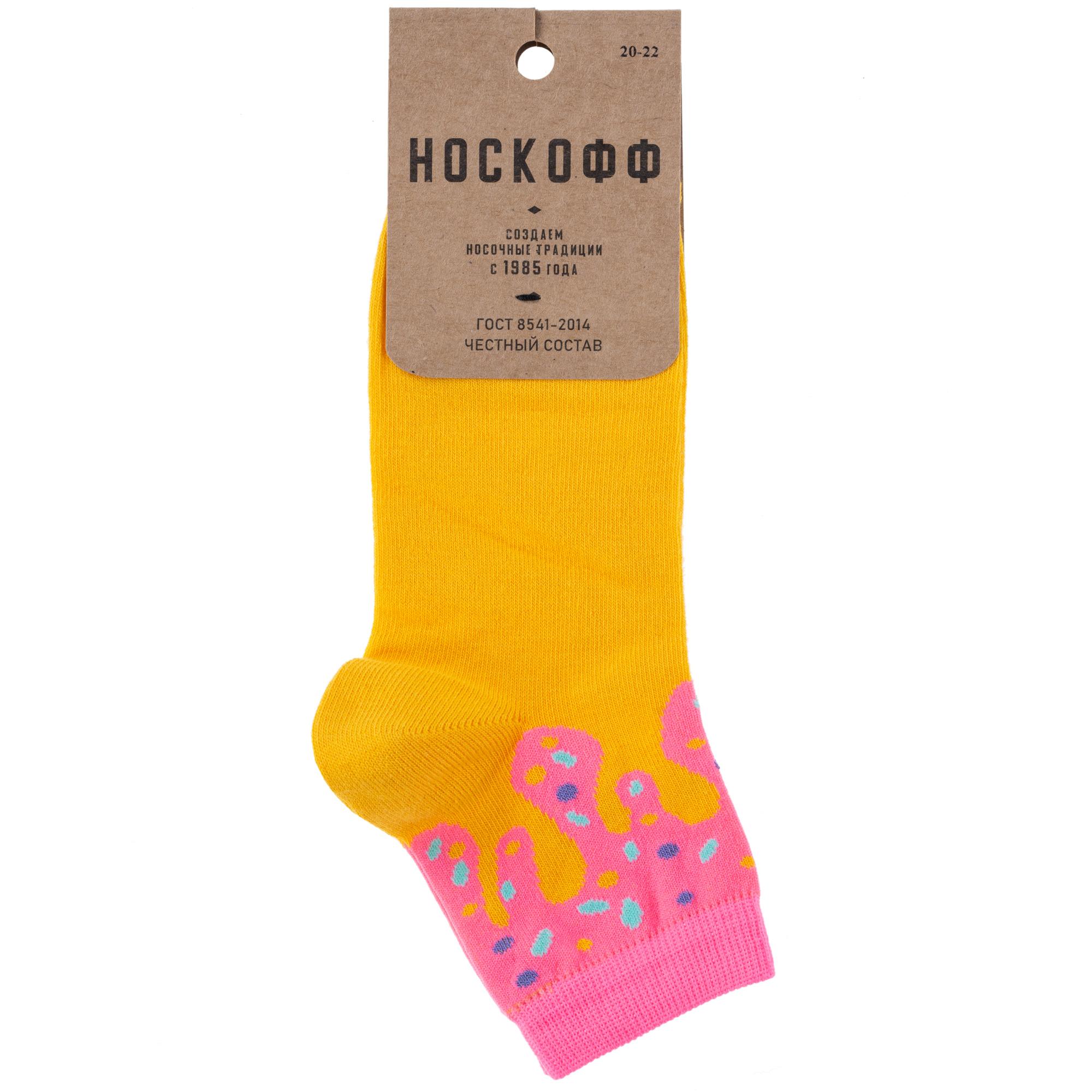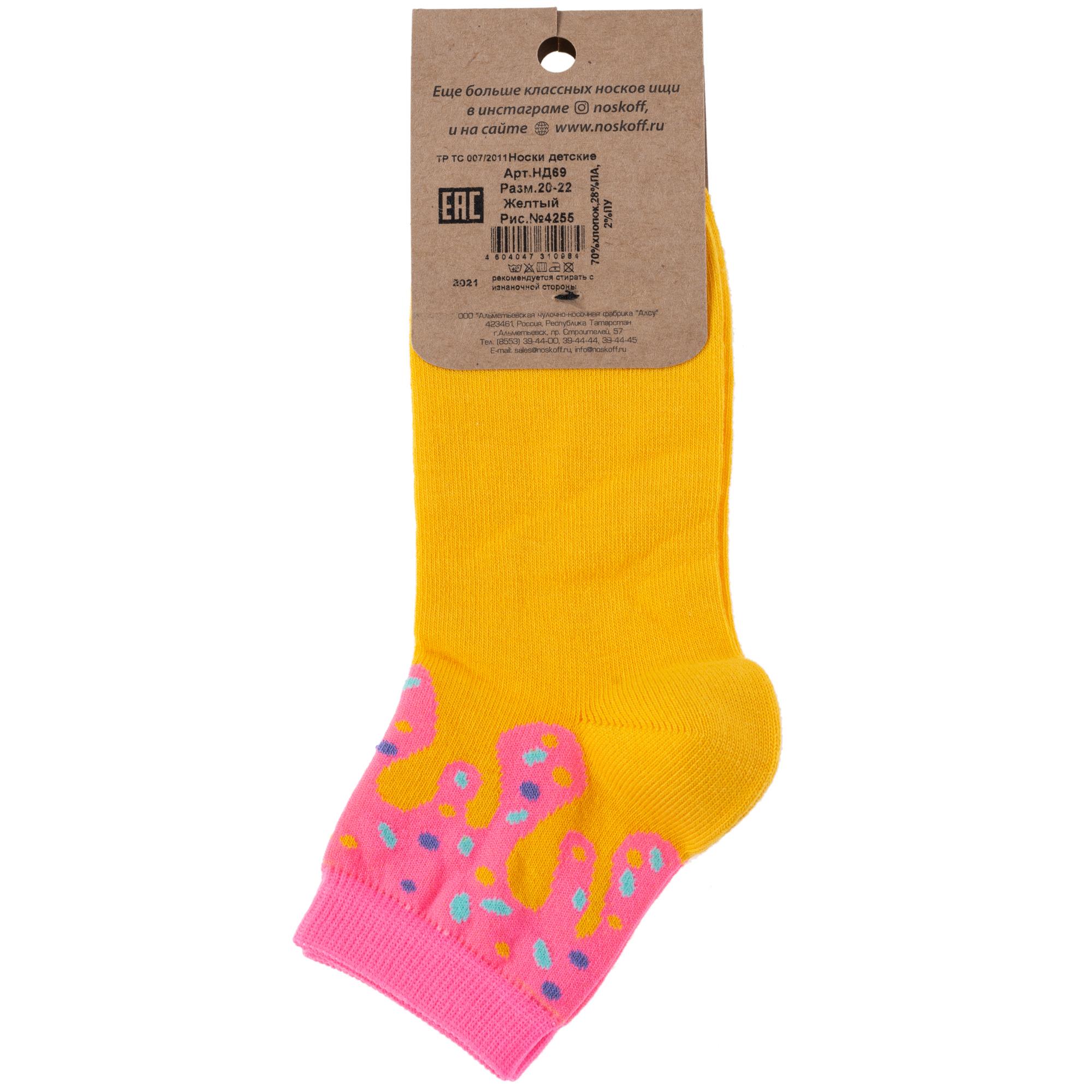 Круглогодичные укороченные детские носки, цвет многоцветные (мультиколор)-желтый, повседневные, шов обычный (не бесшовные), принт (рисунок): еда и напитки, с узором, состав: 70% хлопок, 28% полиамид, 2% полиуретан (эластан), арт. НД69. Производитель «Носкофф» Россия под брендом «Носкофф (алсу)».