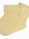 Круглогодичные укороченные детские носки, цвет желтый, с отворотом, классические, шов кеттельный (бесшовная технология), принт (рисунок): в рубчик, однотонный, состав: 88% хлопок, 10% полиамид, 2% эластан, арт. Д-107. Производитель «ООО Орудьевский трикотаж, Россия» под брендом «Rusocks (орудьевский трикотаж)».