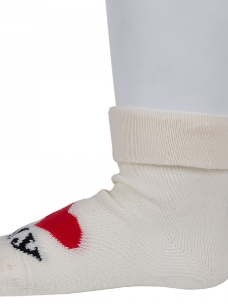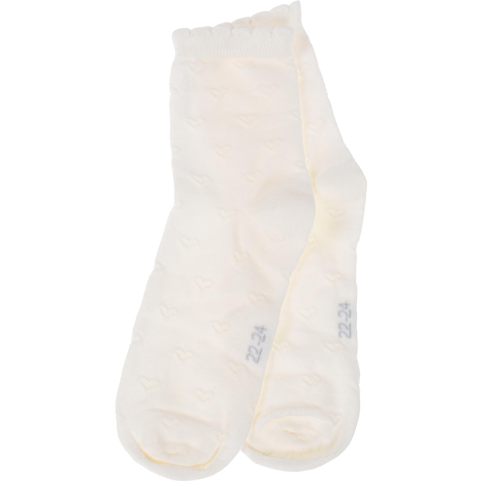 Межсезонные или летние укороченные детские носки, цвет кремовый, классические, конструкция без шва, принт (рисунок): сердечки / поцелуи / любовь, кружево (или имитация), с узором, однотонный, состав: 78% хлопок, 20% полиамид, 2% эластан, арт. Д3-13829Д. Производитель «ООО Орудьевский трикотаж, Россия» под брендом «Rusocks (орудьевский трикотаж)».