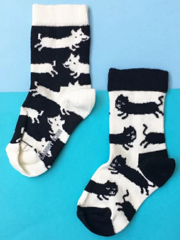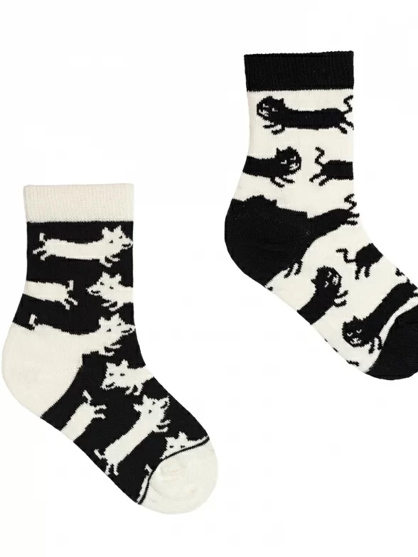Необычные носки, украшенные принтом в виде песцов. Дизайнеры Sammy Icon расположили части рисунка на разных носках, но вместе они образуют единое целое. Модель сделана на основе индийского эко-хлопка.
