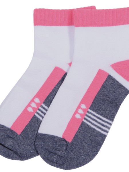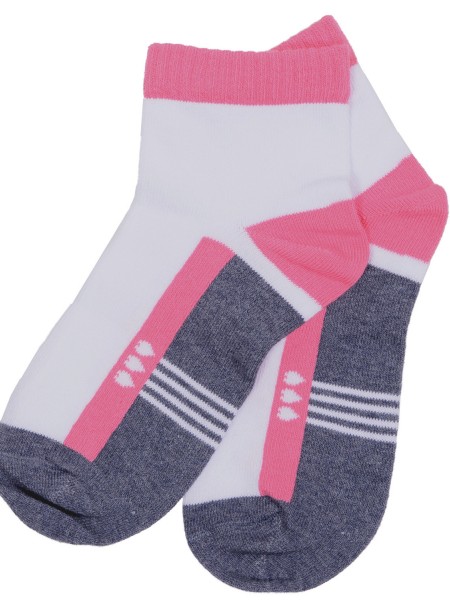 Укороченные детские носки из высококачественного трикотажа с высоким содержанием натурального хлопка. Они очень удобны и обладают хорошей износостойкостью. Модель оформлена контрастными полосками в спортивном стиле.