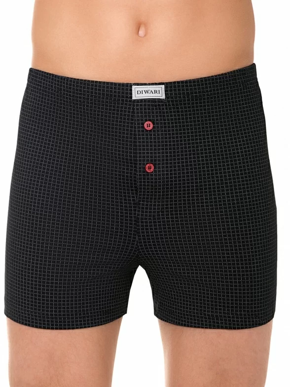Мужские трусы-боксеры сделаны из мягкого хлопка с принтом в виде полосок, образующих клетки. Модель дополнена широкой резинкой, которая не пережимает кожу. Спереди — две декоративные пуговицы.