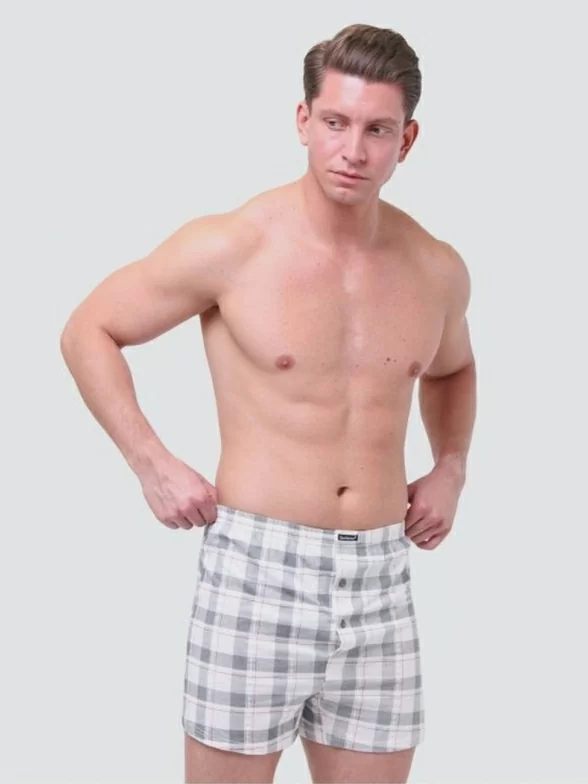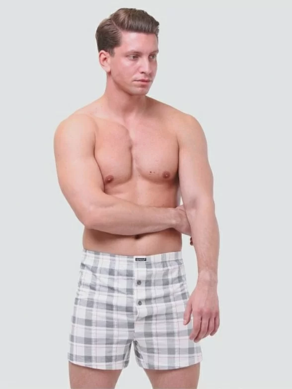Мужские трусы-боксеры удлиненного кроя, декорированные принтом в клетку. Они отличаются удобным втачным поясом и гульфиком на двух пуговицах. Модель приятна к телу и обеспечивает высокий уровень комфорта.