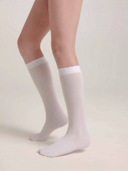 Изысканные гольфы для девочек, декорированные модным фантазийным узором. Модель отличается удобной широкой резинкой, не передавливающей кожу и не вызывающей усталости при длительном ношении.