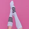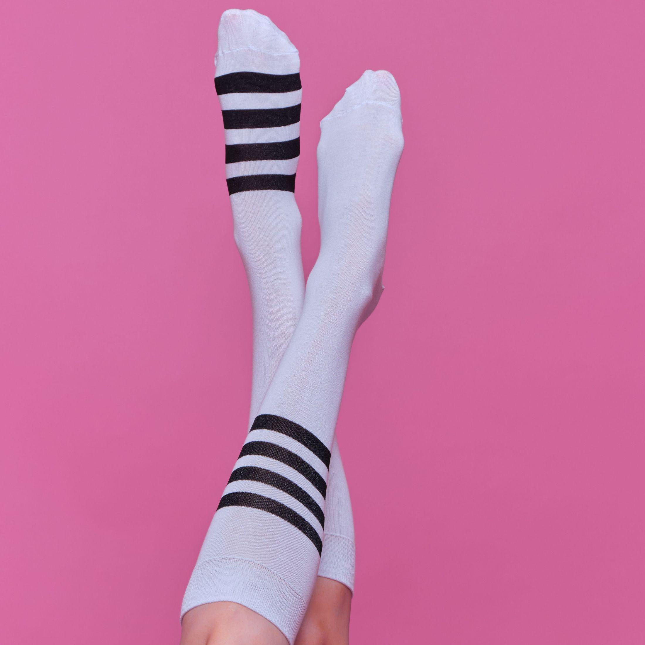 Гольфы унисекс "Танцующие тени" с принтом в виде контрастных полос, расположенных несимметрично на разных гольфах в паре.