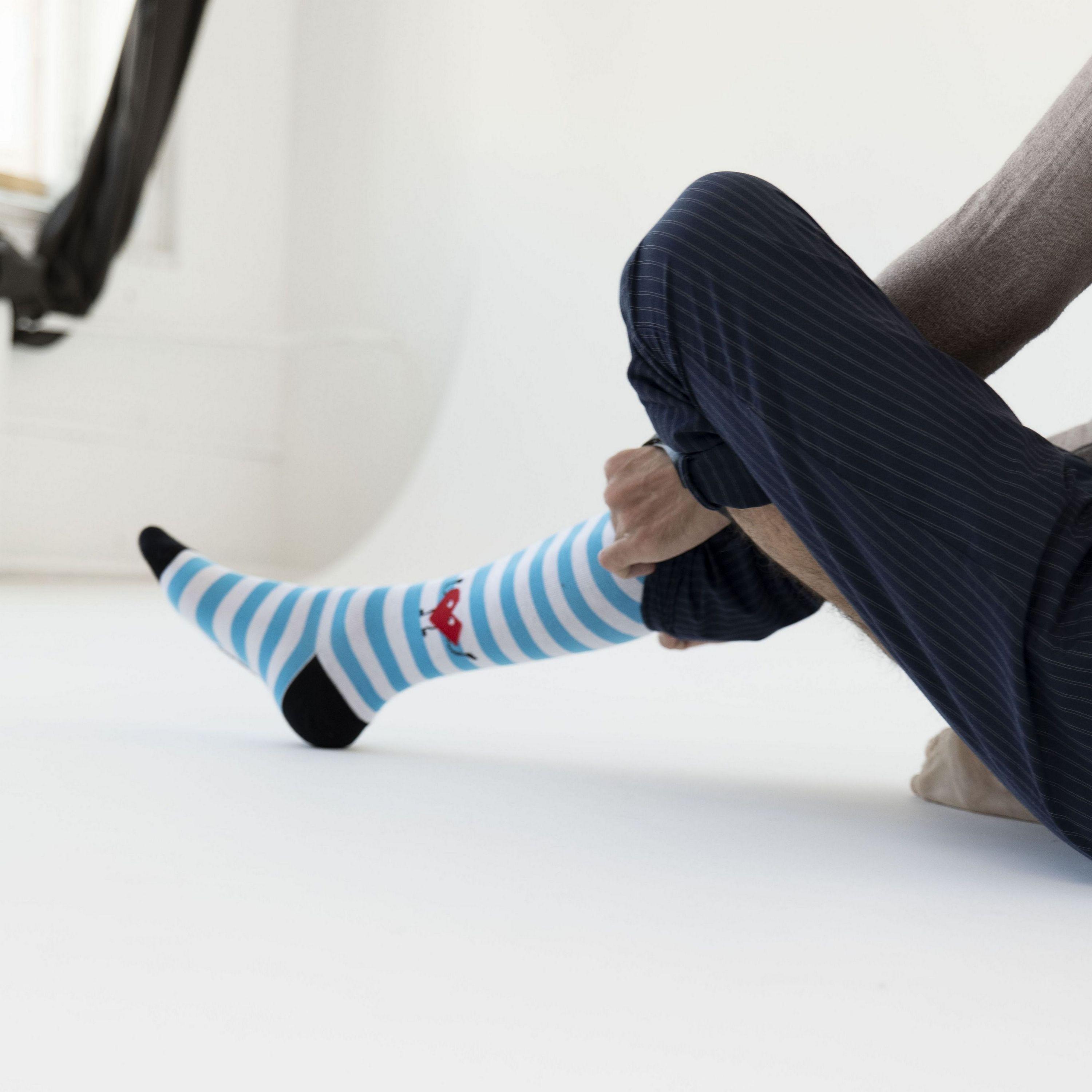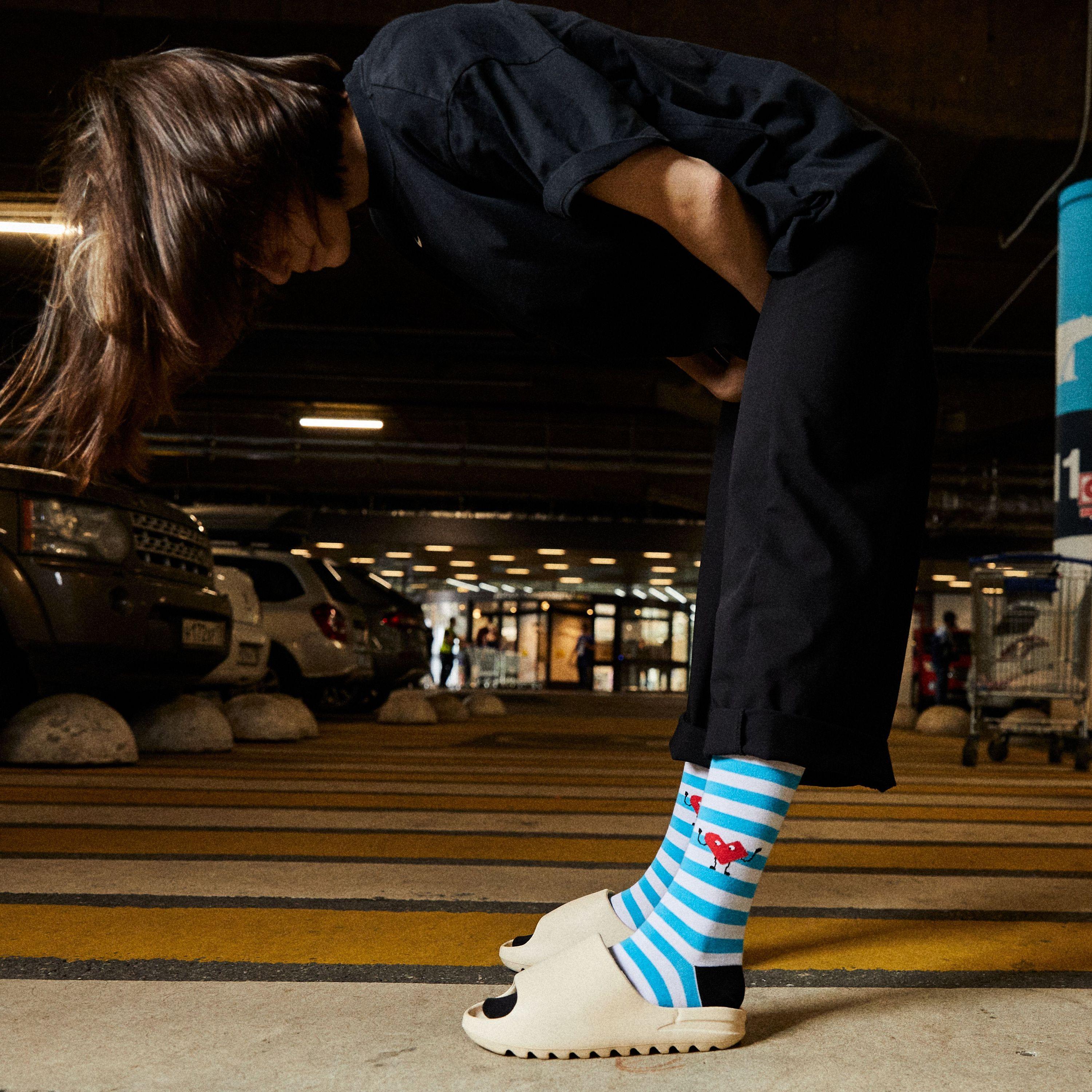 Носки вяжутся на фабрике в Санкт-Петербурге, отсюда в названии бренда и St. Создатели торговой марки помогают нам разбавлять скучные офисные будни своими необычными моделями в стиле Casual Friday - когда можно ослабить дресс-код и повеселиться!