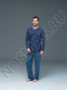Элегантный домашний комплект для мужчин, в который входят брюки свободного кроя и полуприлегающий джемпер с длинным рукавом и V-образным вырезом горловины.