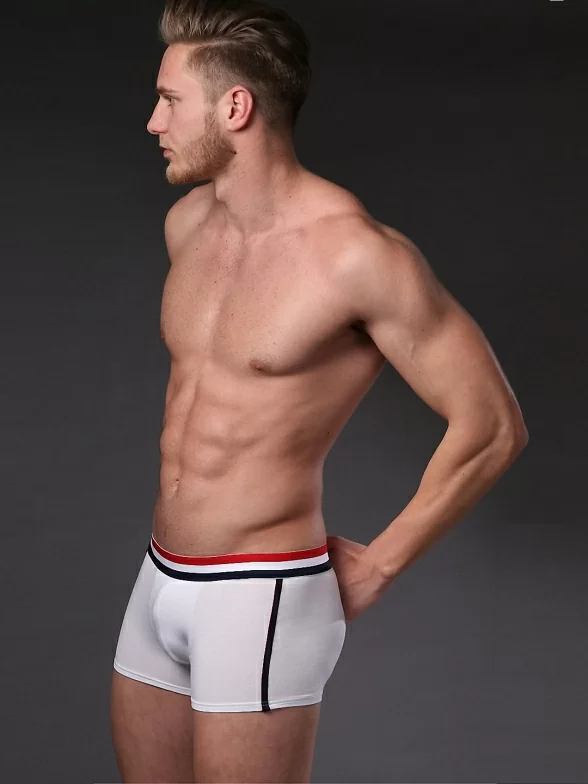 Удобные хлопковые боксеры на широком поясе, который оформлен разноцветными полосками. По бокам расположены акцентирующие полосы контрастного цвета. Высококачественный трикотаж и деликатная обработка швов, а также краев, делает модель очень удобной.