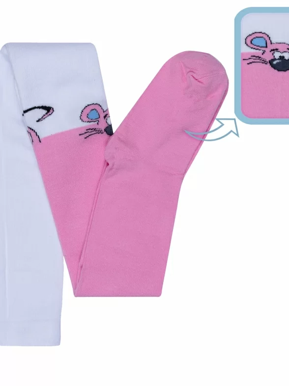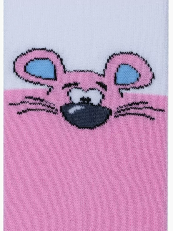 Детские колготки с имитацией гольфин и принтом в виде мышки.