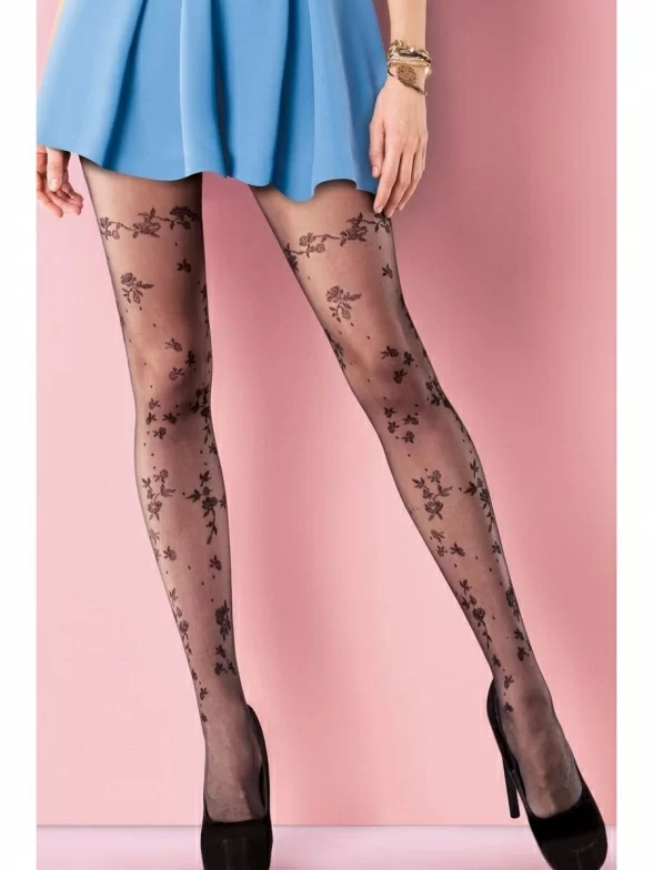 Потрясающие фантазийные колготки из лайкры с двойным оплетом. Модель плотностью 20 Den c красивым цветочным узором. Модель также отличается плоским швом, х/б ластовицей и отсутствием трусиков.