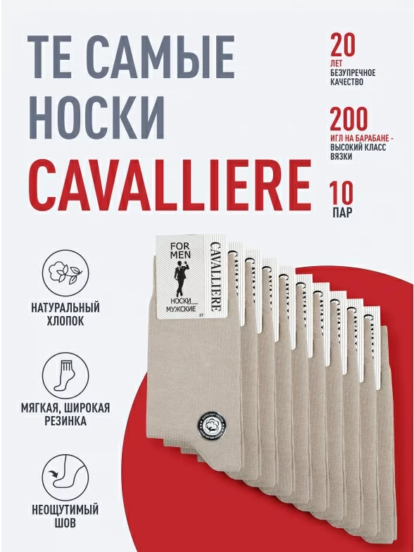 В комплект входит 10 пар темно-бежевых носков артикула С-330/1 с индивидуальными фабричными этикетками.