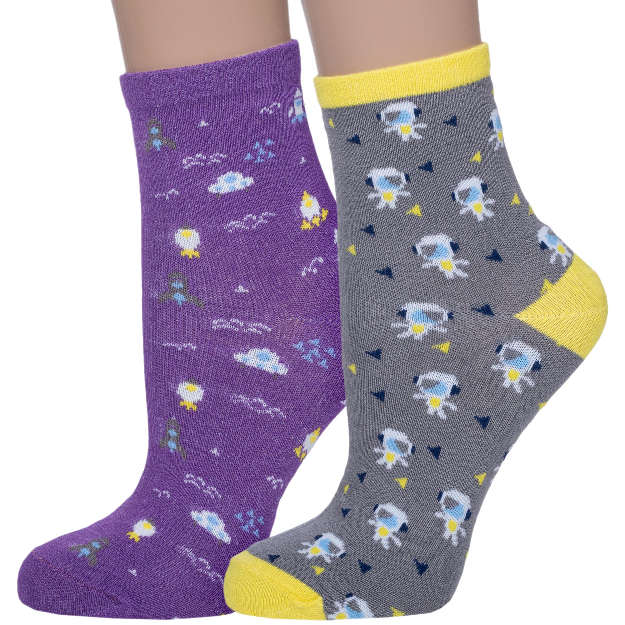 Комплект из 2 пар детских носков бренда Akos: с принтами на тему космоса. Подойдут мальчикам для прогулок, школы или детского сада в демисезонный период.