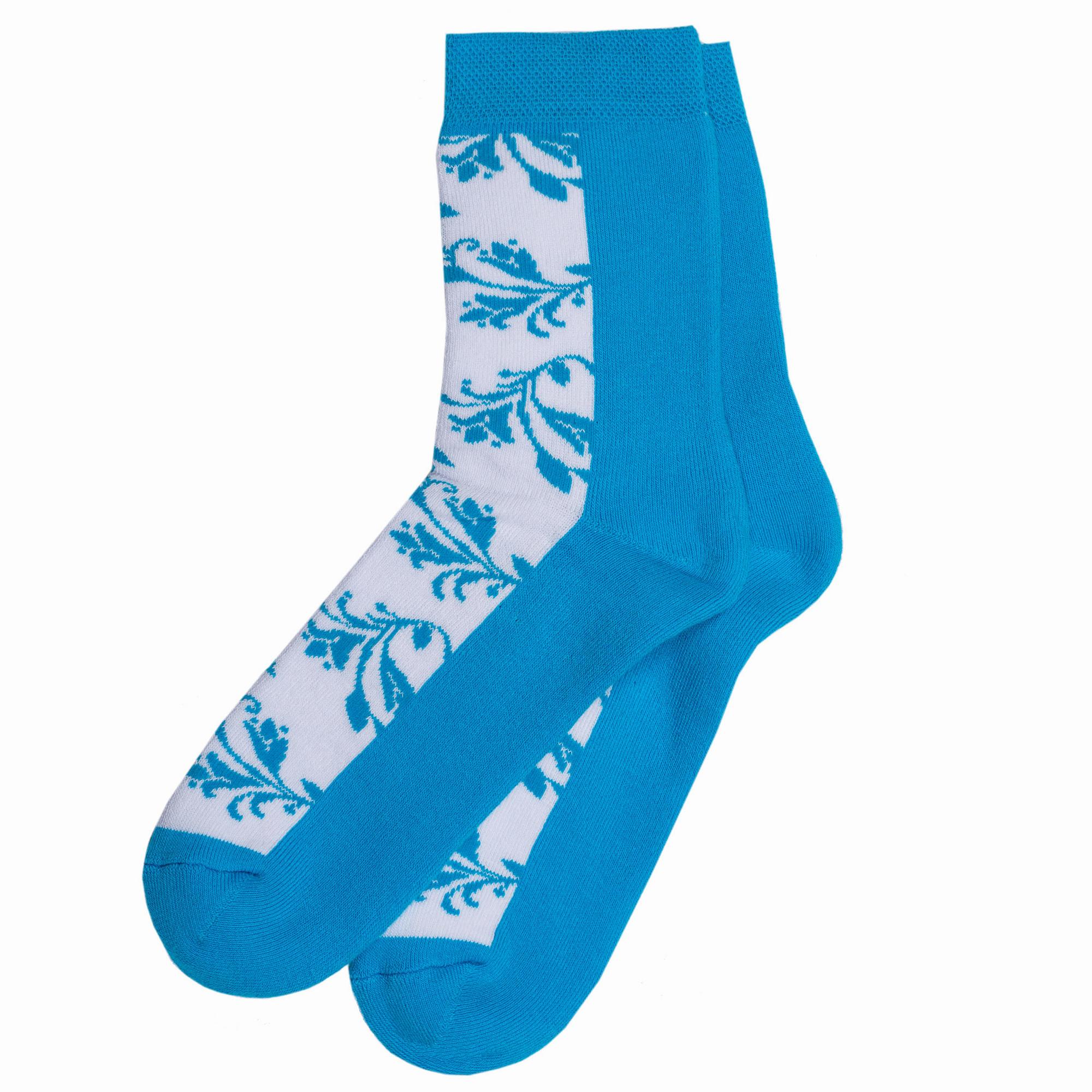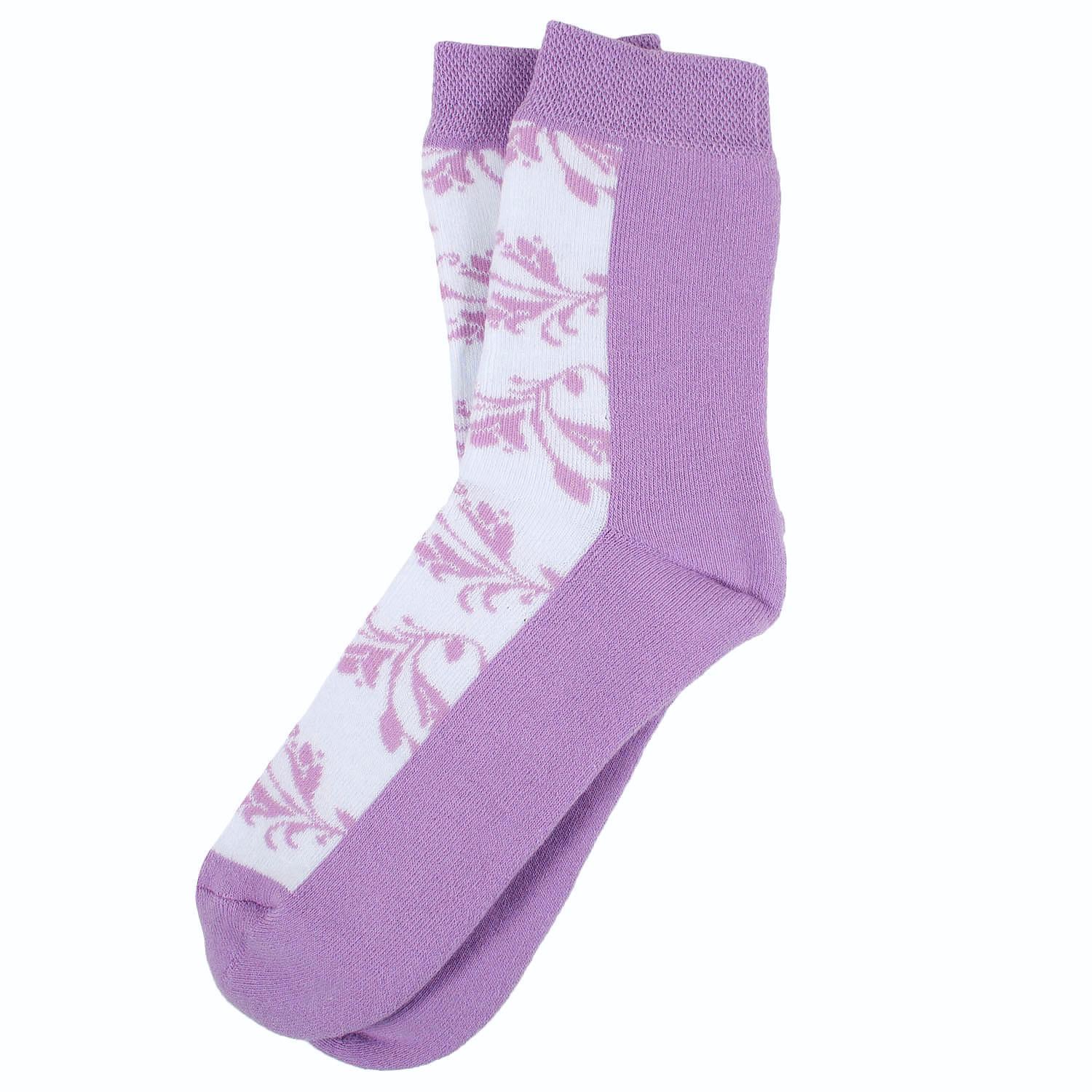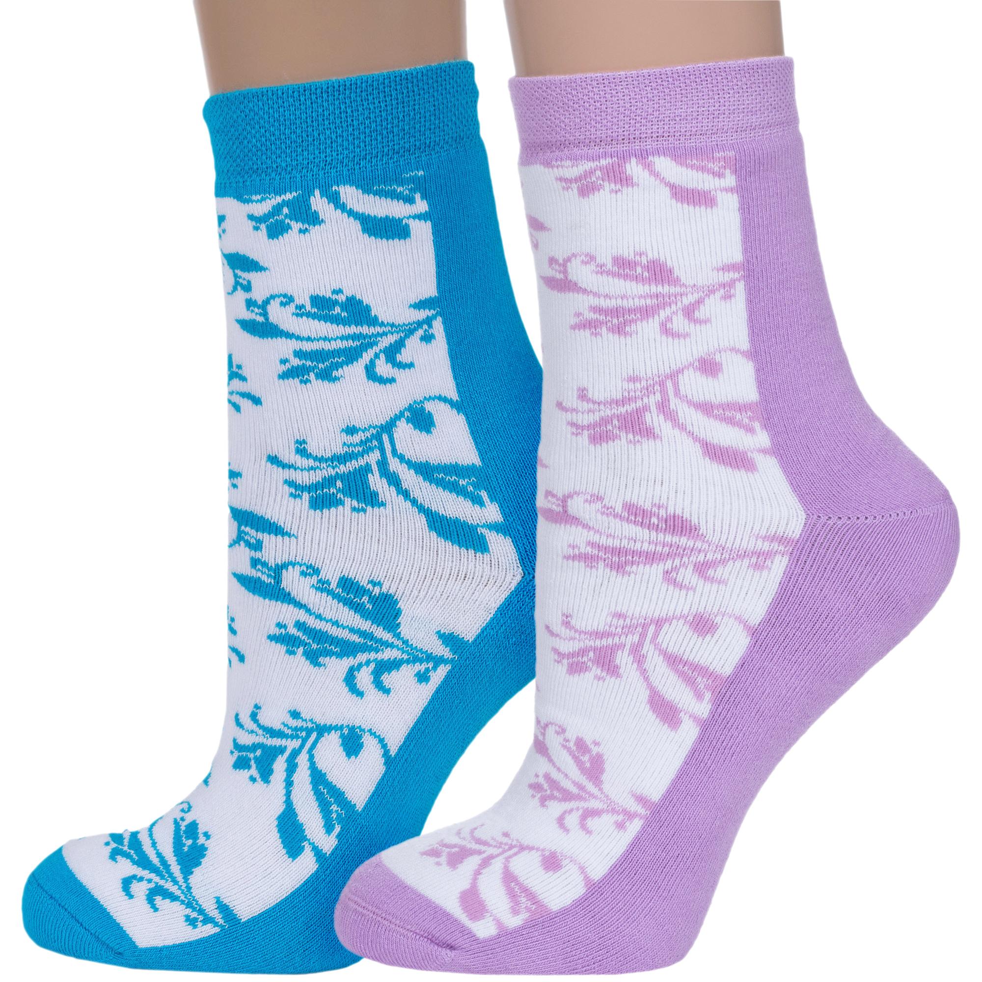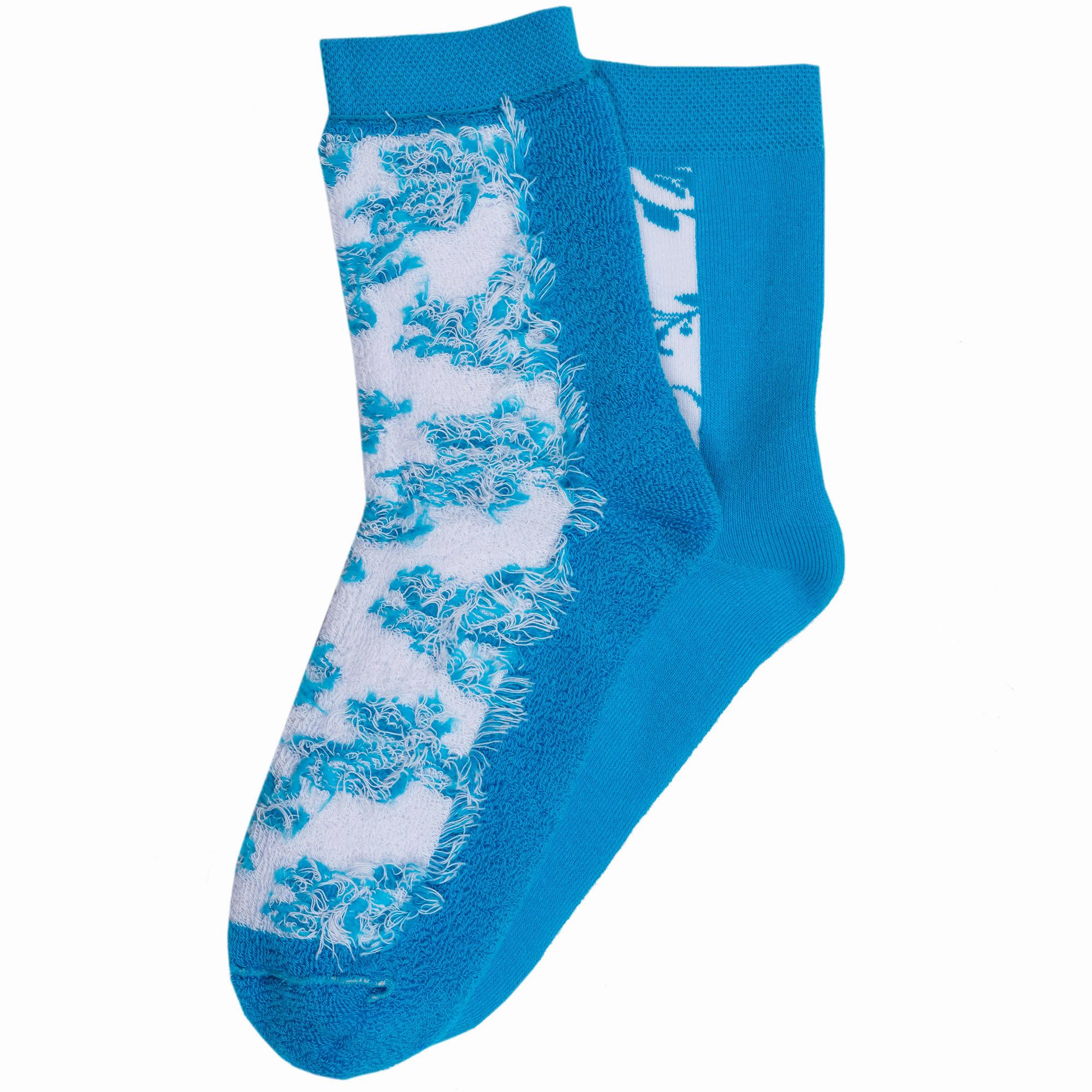 Комплект детских махровых носков с растительным принтом: по 1 паре бирюзового и сиреневого цвета.