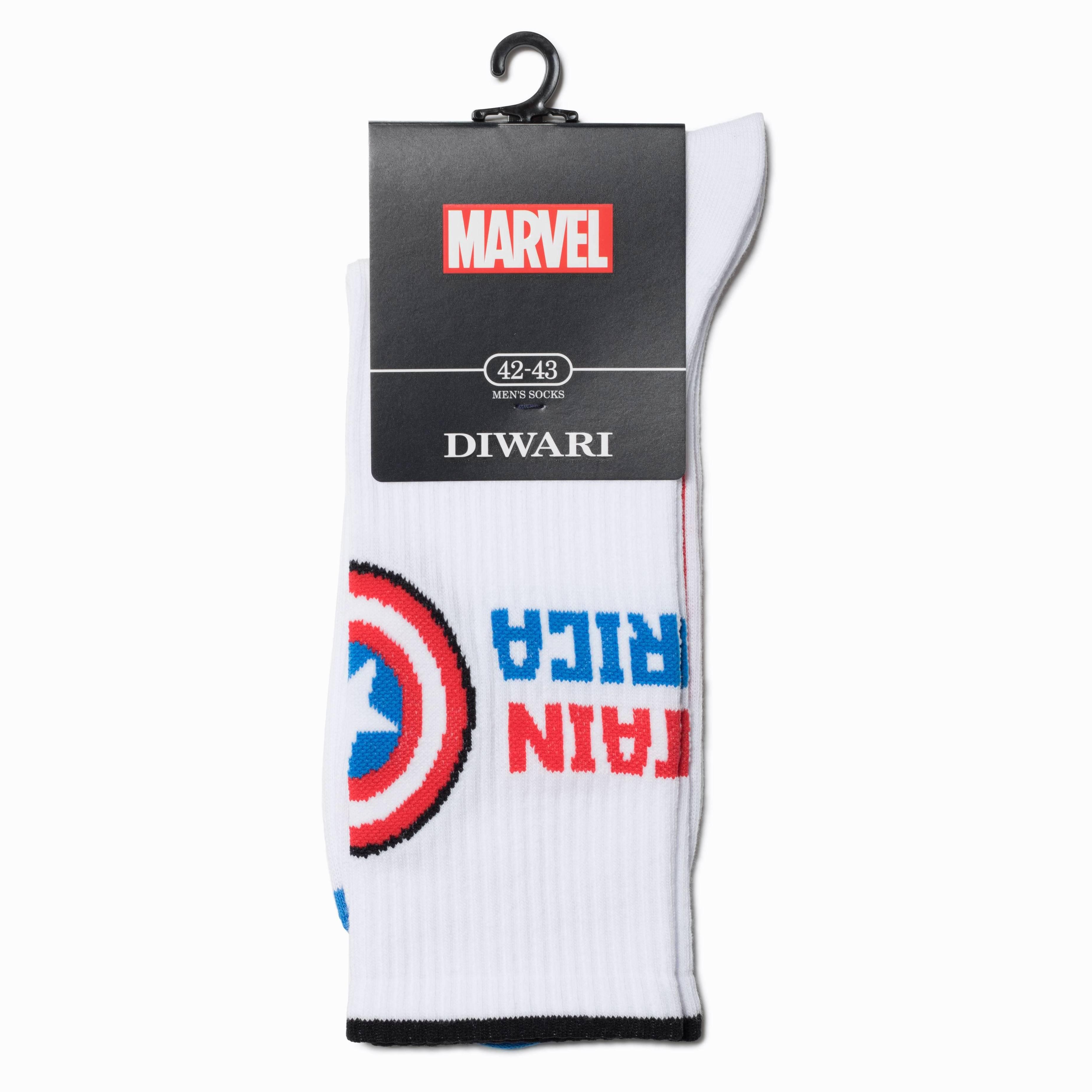 Комплект мужских носков с принтом в виде щита супергероя Капитана Америки из вселенной Marvel и с надписью "Captain America".