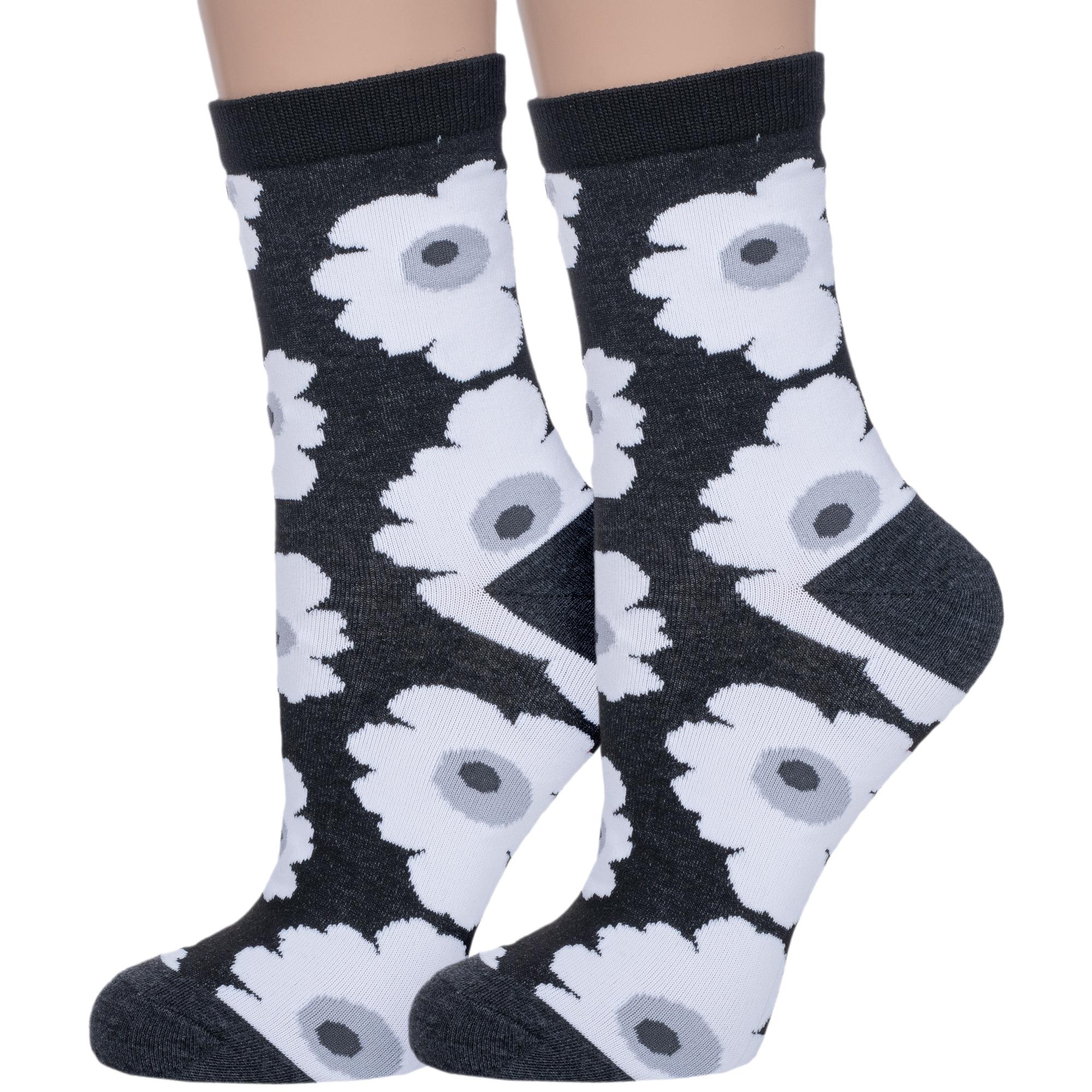 Комплект из 2 пар женских носков Hobby Line, 2-ХЛЖ, 219, рис. 05, ЧЕРНЫЕ "Цветочки"