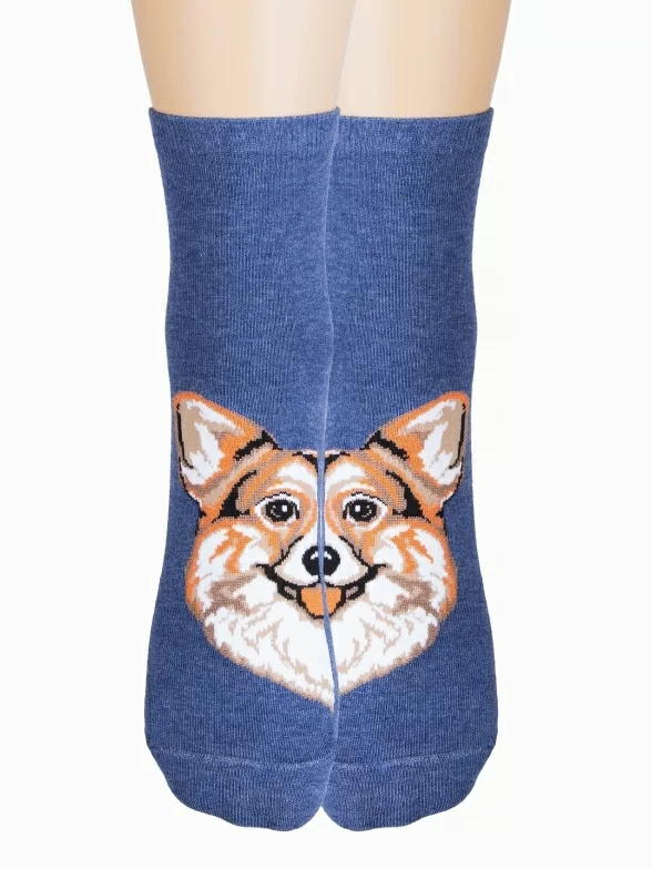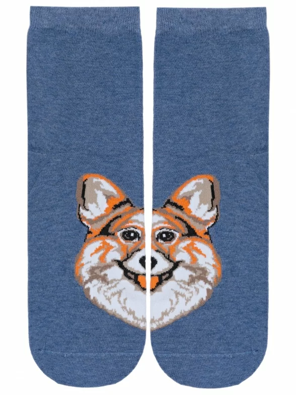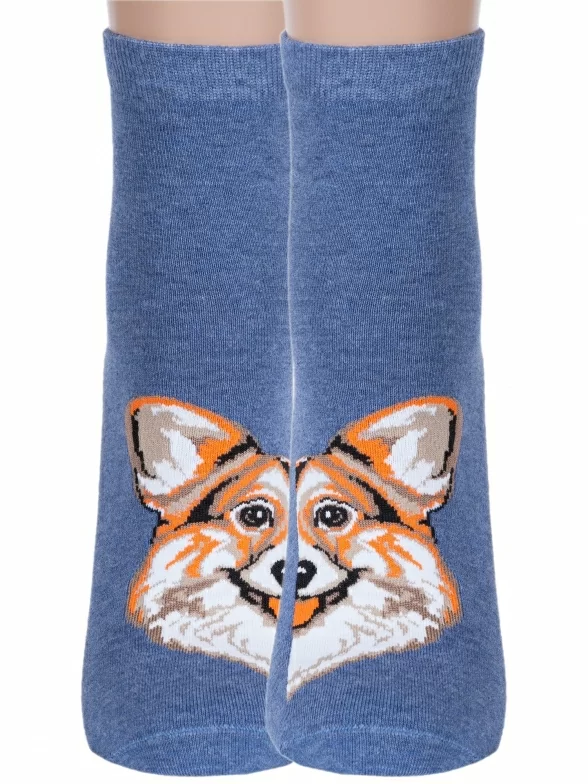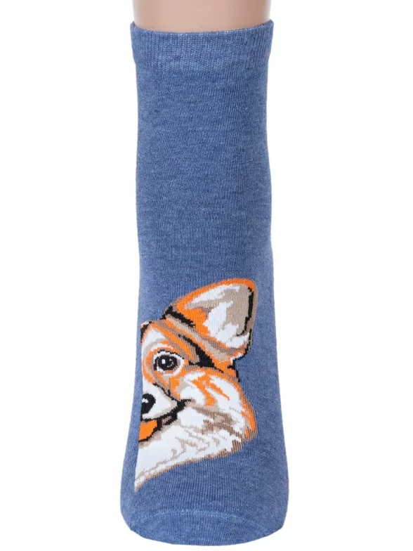 Носки артикула С-1001 с собакой и с таким составом: 60% хлопок, 20% полиамид, 16% полипропилен, 4% эластан.