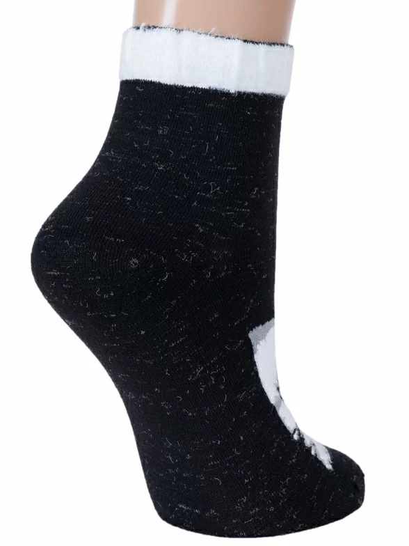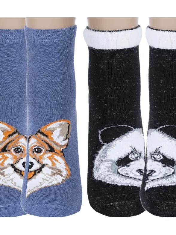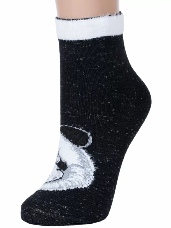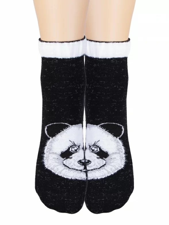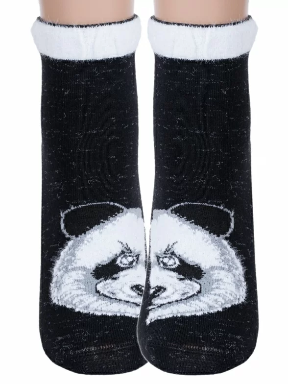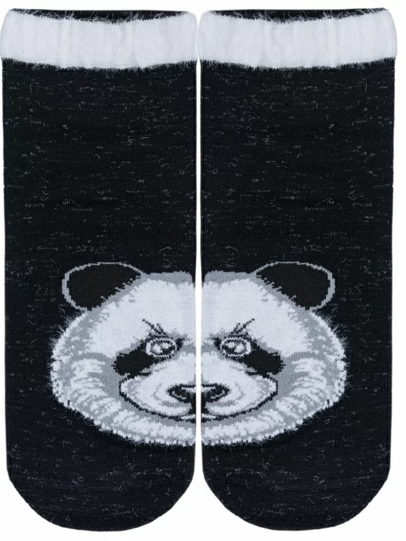 Носки артикула С-1002 с пандой из пушистой нити и таким составом: 28% хлопок, 33% полиамид, 28% вискоза, 7% полипропилен, 4% эластан.