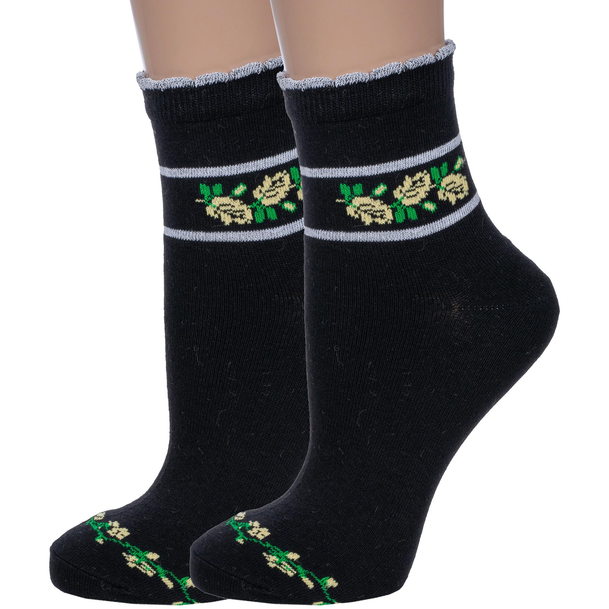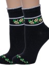 Комплект женских носков из 2 пар, круглогодичные, укороченные, цвет черный, повседневные, шов обычный (не бесшовные), принт (рисунок): цветы / растения, с узором, состав: 60% хлопок, 38% полиэстер, 2% эластан, арт. 2-0С9252. Производитель «ООО Фабрика Василина, Беларусь» под брендом «Vasilina».