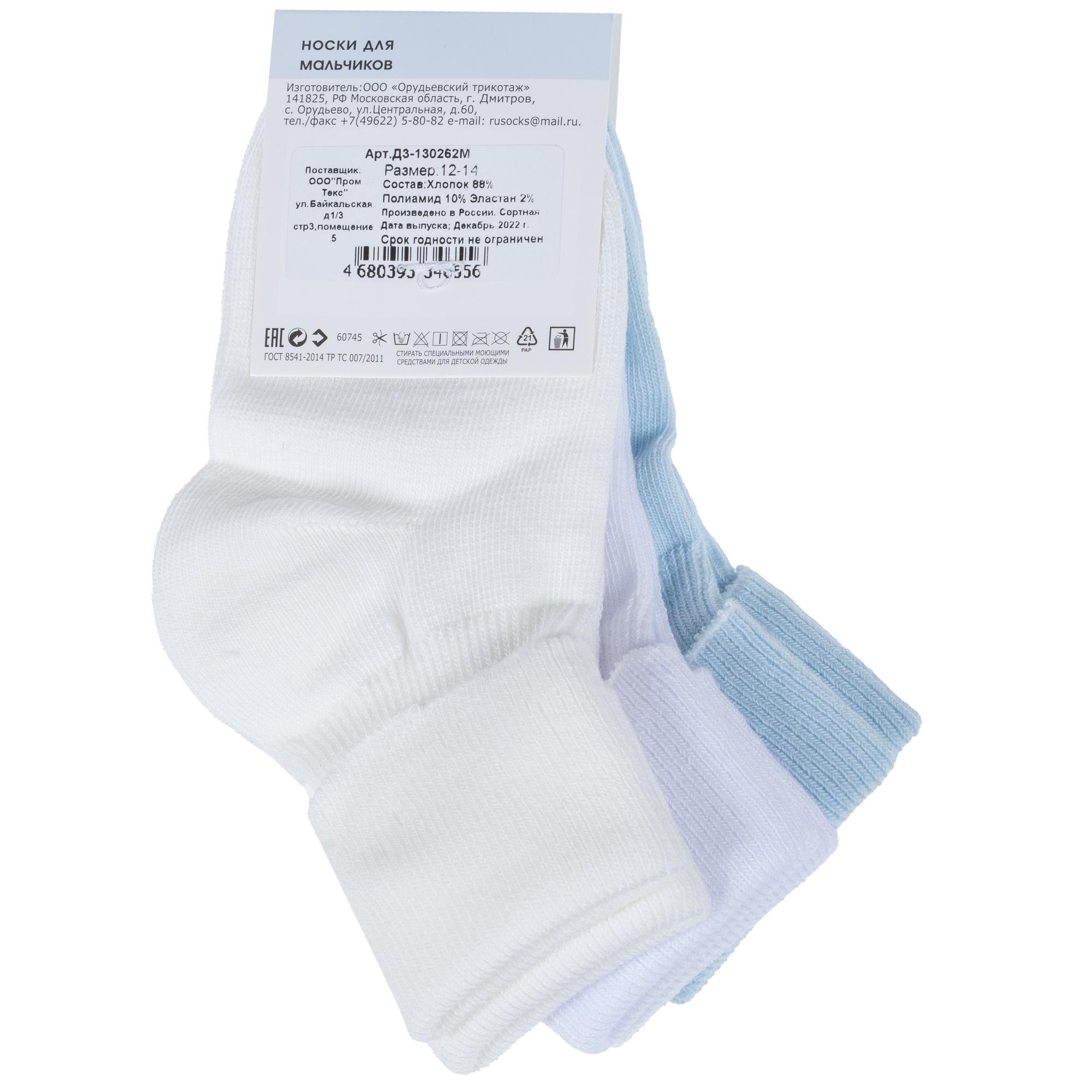 В комплект входят 3 пары носков арт. Д3-130262М: по 1 паре белого, кремового и голубого цветов. Поставляются с единой фабричной этикеткой в обычном или курьер-пакете.
