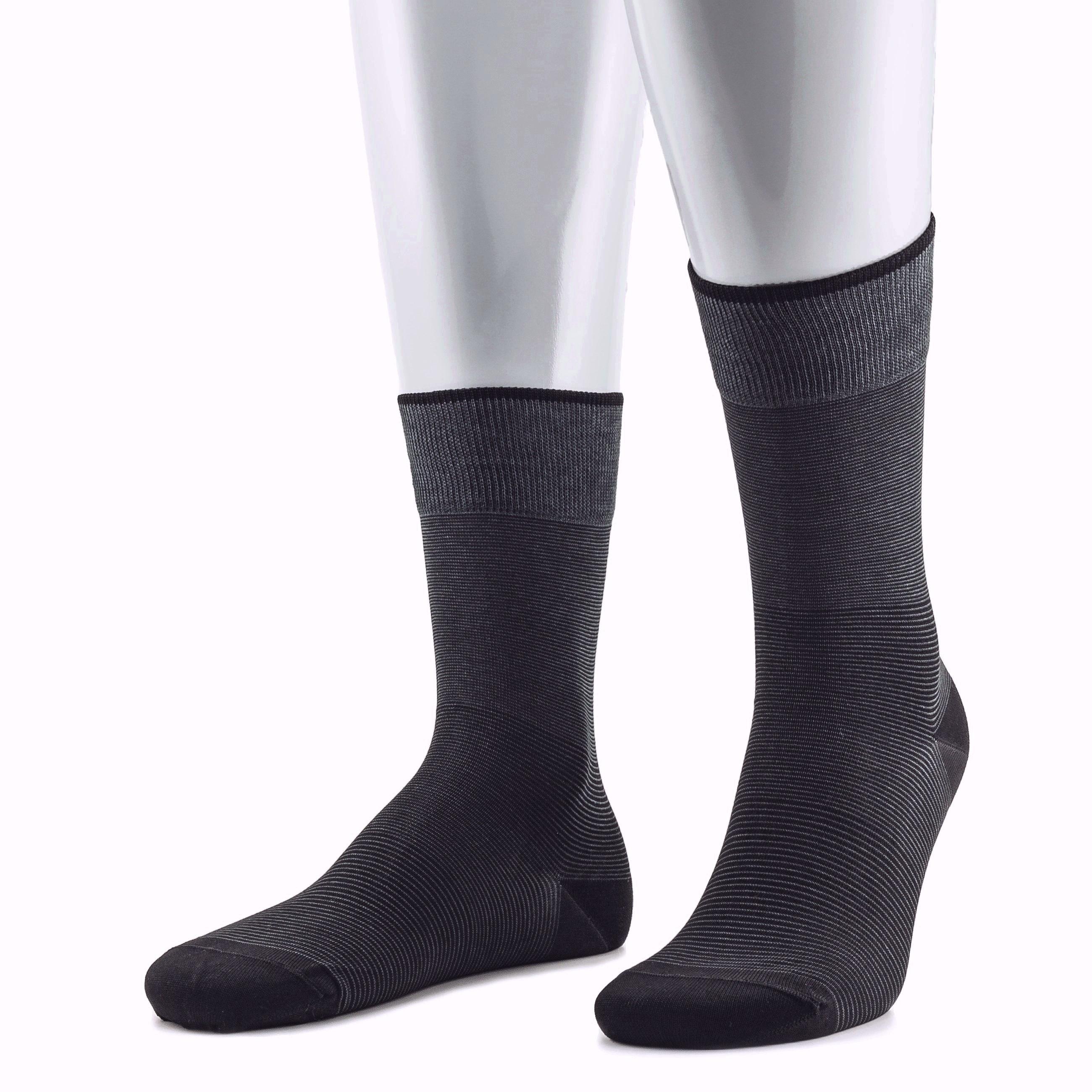 Модель средней длины в мелкую полоску с плоским малоощутимым швом на мыске и с двойным бортом (манжетом резинки).