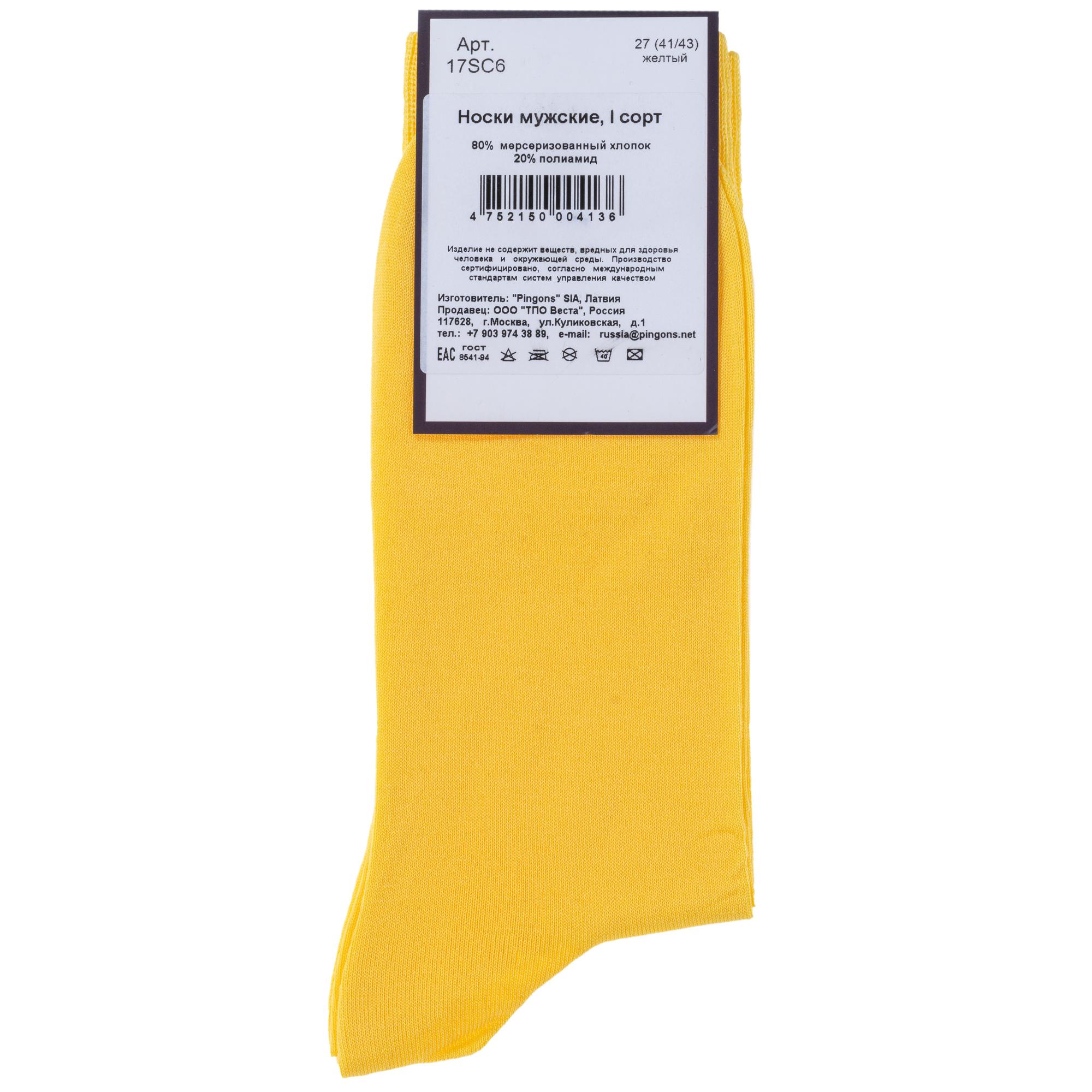 В комплект входят 3 пары желтых носков артикула 17SC6 с индивидуальными фабричными этикетками, поставляются в прозрачном пакете с дополнительной транспортной упаковкой.