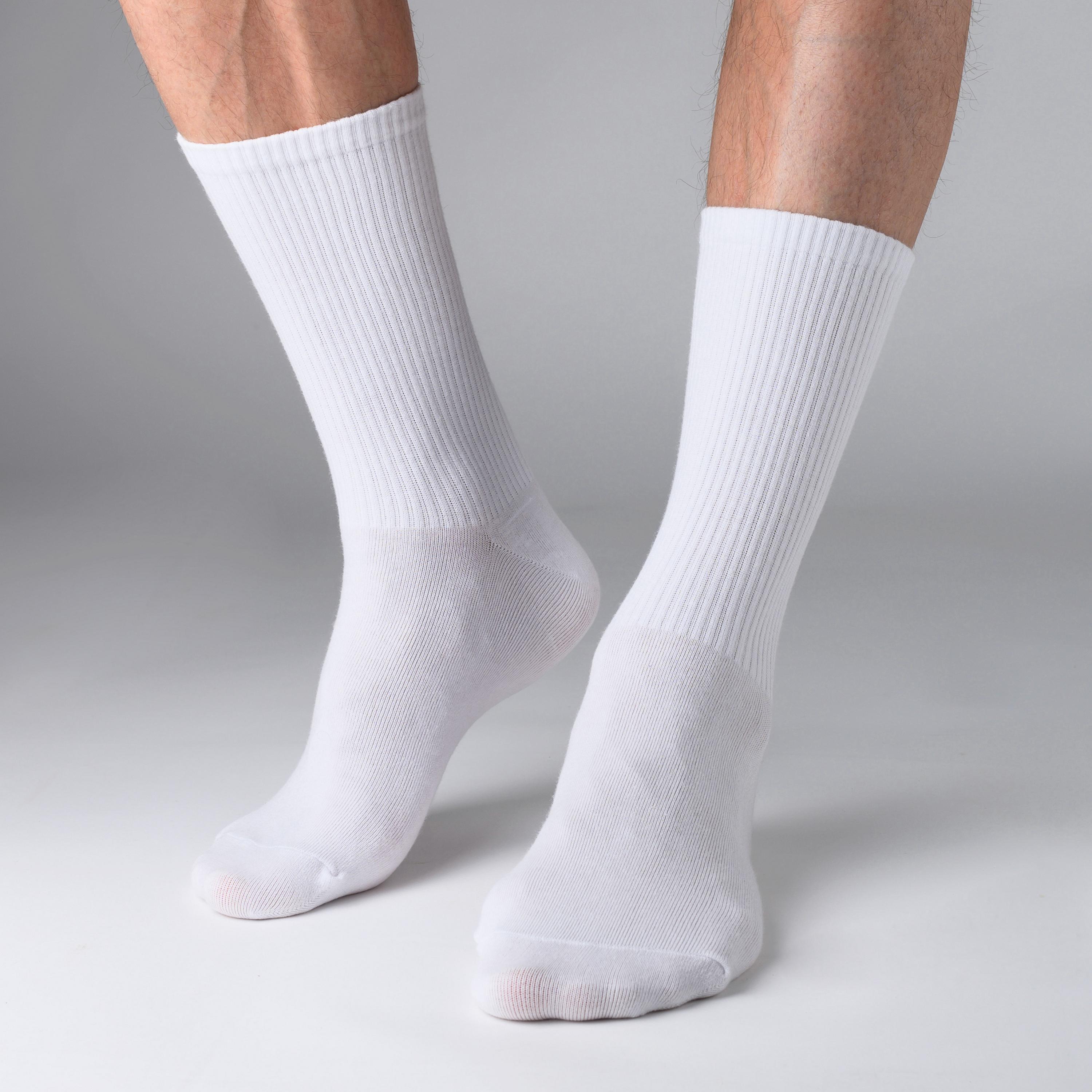 В комплект входят 3 одинаковых пары белых носков с индивидуальными фабричными этикетками.