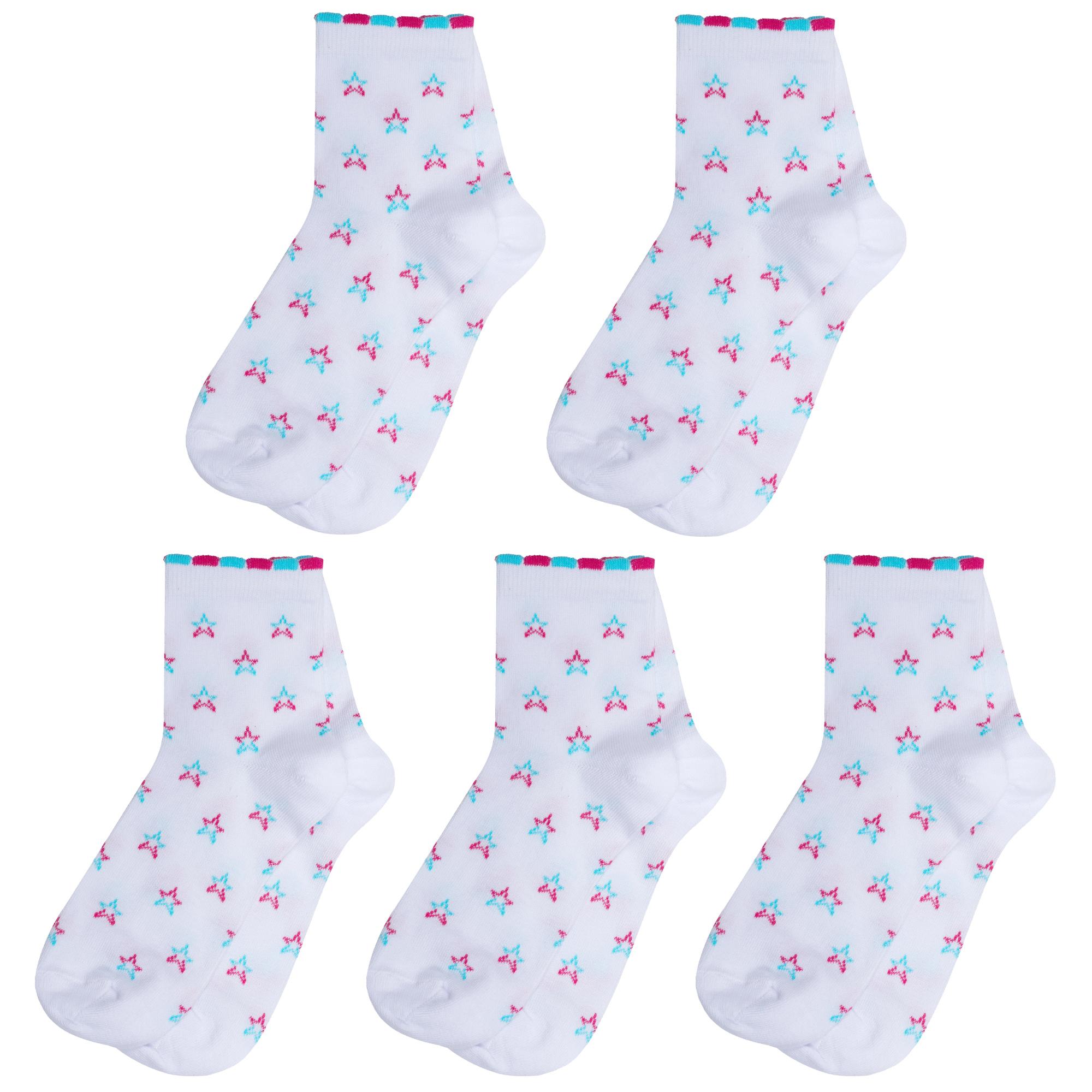 Комплект из 5 пар детских носков Борисоглебский трикотаж, 5-8С3, №1 БЕЛЫЕ с бирюзово-розовым