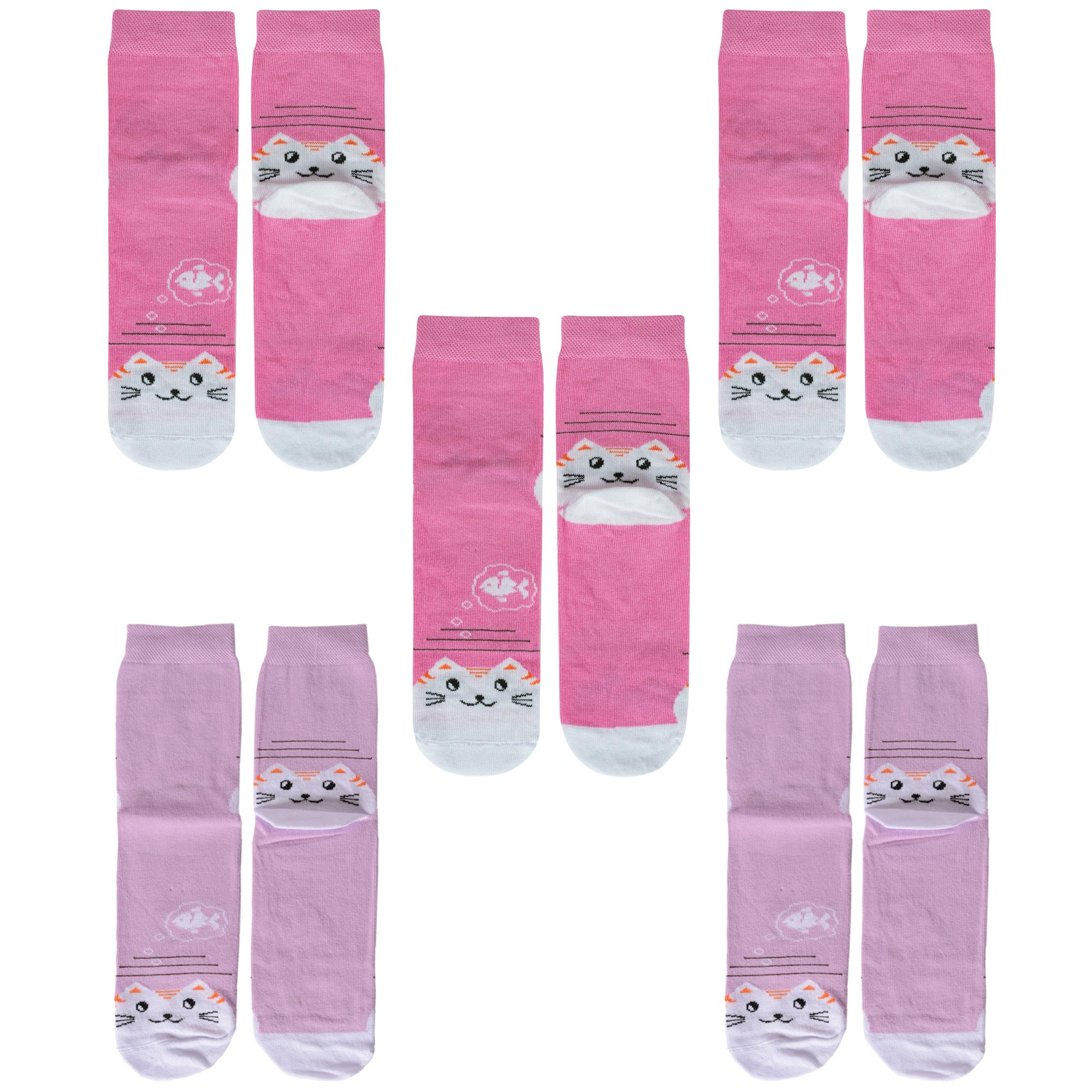 В комплект входят 5 пар носков артикула D-3R12 с индивидуальными фабричными этикетками: 3 пары розового цвета и 2 - сиреневого.