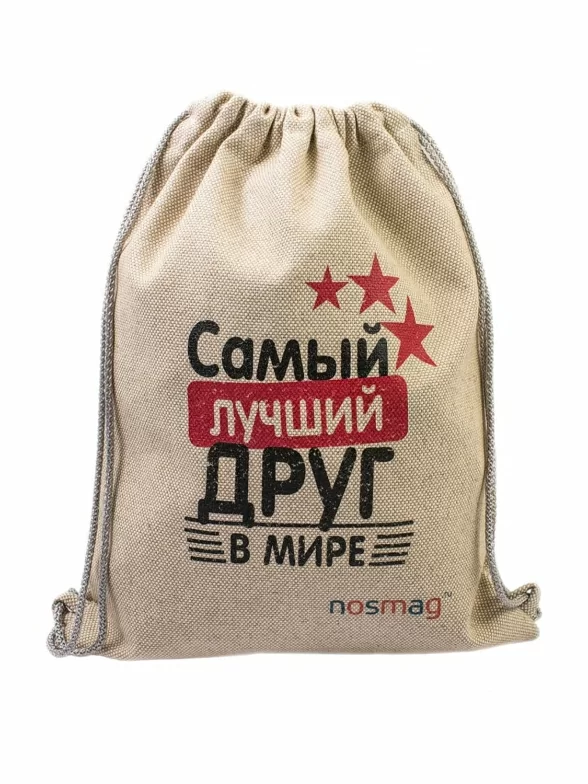 В этот красивый оригинальный мешок можно положить какой угодно подарок для лучшего друга. Поскольку это ваш друг – вам лучше знать предпочтения, а мы лишь предлагаем идею оригинальной и запоминающейся упаковки, которая не будет выброшена, а напротив: будет радовать долго и точно пригодится в хозяйстве. Мешок изготовлен из экологичных натуральных материалов и затягивается с помощью удобных завязок. Ну а если идея самого подарка еще не созрела, мешок всегда можно заказать вместе с хорошими носками!