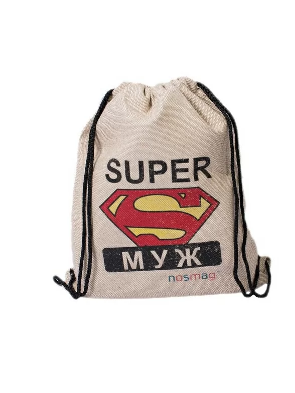Суперский подарок, который прост, мил и удобен. Этот мешок комфортно и приятно носить или использовать для хранения всего, что только туда поместится. Он затягивается на удобные шнурки, которые образуют рюкзачные лямки (ну или длинные ручки, тоже удобные), а сделан такой мешок из льна и хлопка. Принт нанесен технологичным способом и будет долго греть душу отцу семейства.