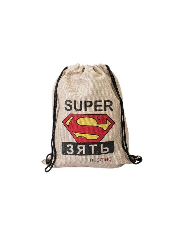 Льняной мешок с принтом, Л021, "SUPER зять"