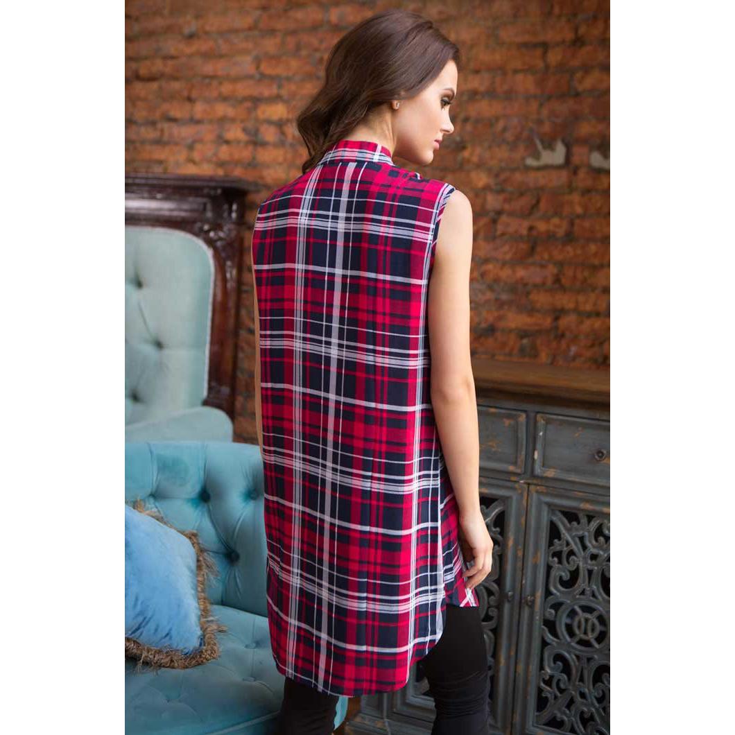 Удобная домашняя женская туника на пуговицах. Она сделана из принтованной вискозы и отличается воротником-стойкой, а также нагрудным карманом с вышивкой. Клетка отлично сочетается с однотонными леггинсами и домашними брюками.