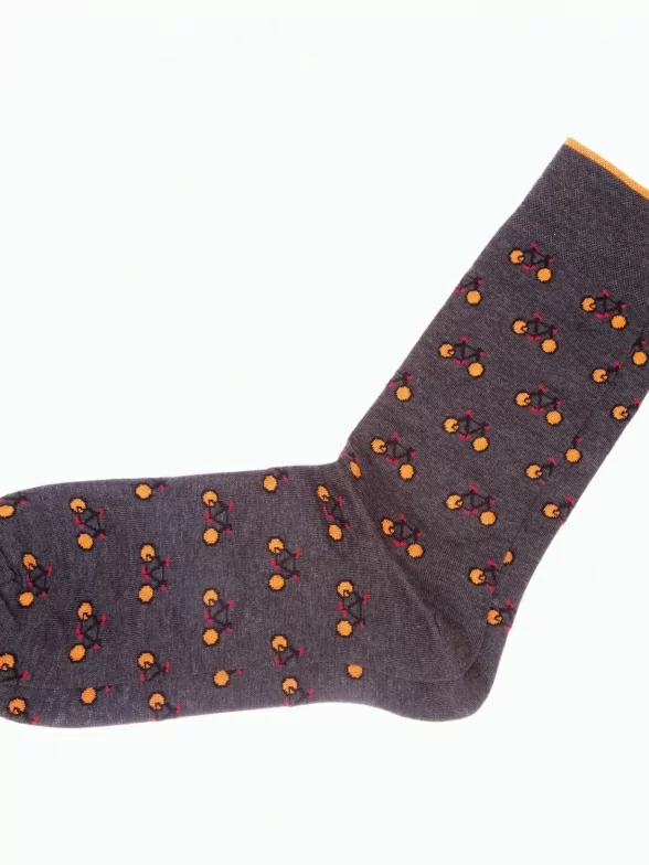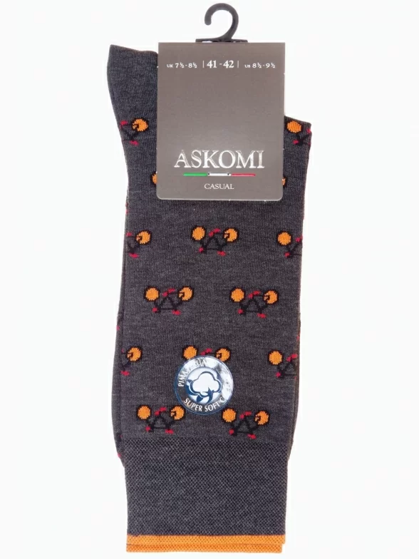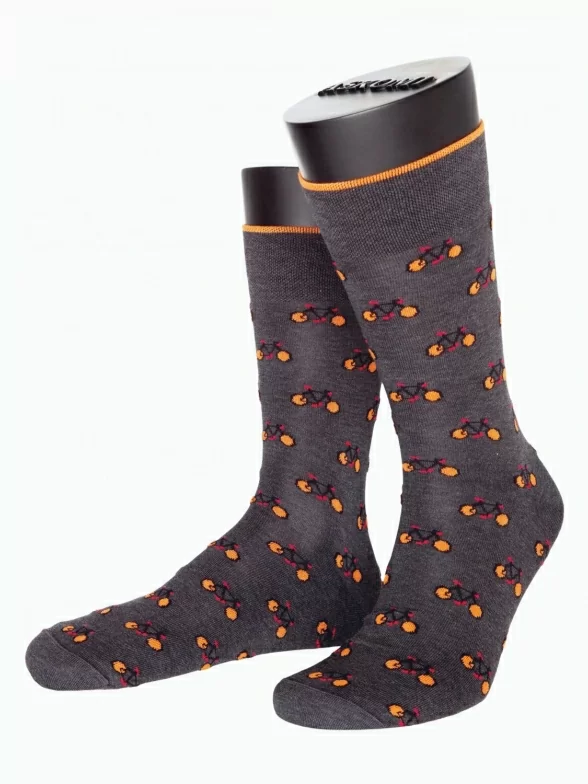 Фантазийные носки классической длины, изготовленные из перуанского хлопка PIMA. Модель оформлена броским принтом с велосипедами. Добавление полиамида обеспечивает дополнительную износостойкость. Носки изготовлены по бесшовной технологии.