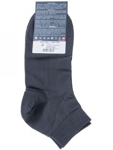 Однотонные мужские носки из плотного трикотажа с высоким процентом натурального хлопка. Модель укороченного фасона примечательна удобной резинкой и отлично подходит под спортивную обувь.