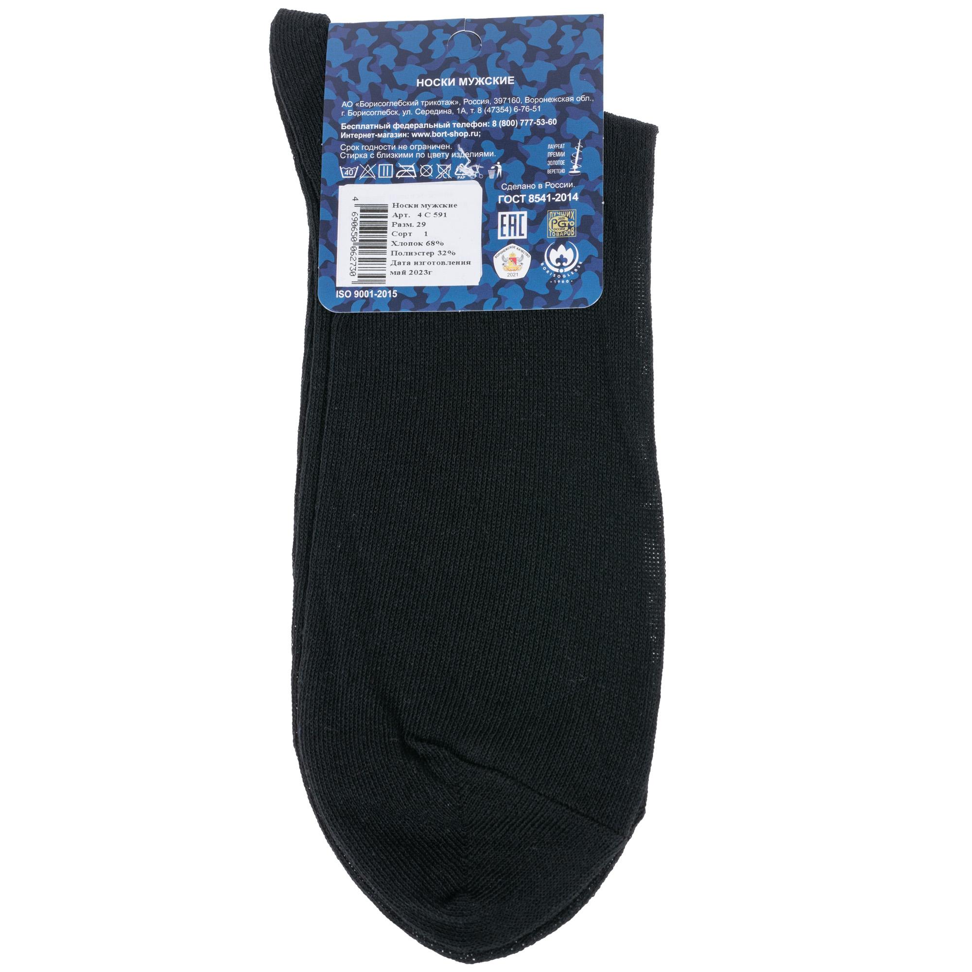 Межсезонные или летние укороченные мужские носки, цвет черный, классические, шов обычный (не бесшовные), принт (рисунок): однотонный, без рисунков/узоров, состав: 68% хлопок, 32% полиэстер, арт. 4С591. Производитель «АО Борисоглебский трикотаж, Воронежская обл, Россия» под брендом «Борисоглебский трикотаж».