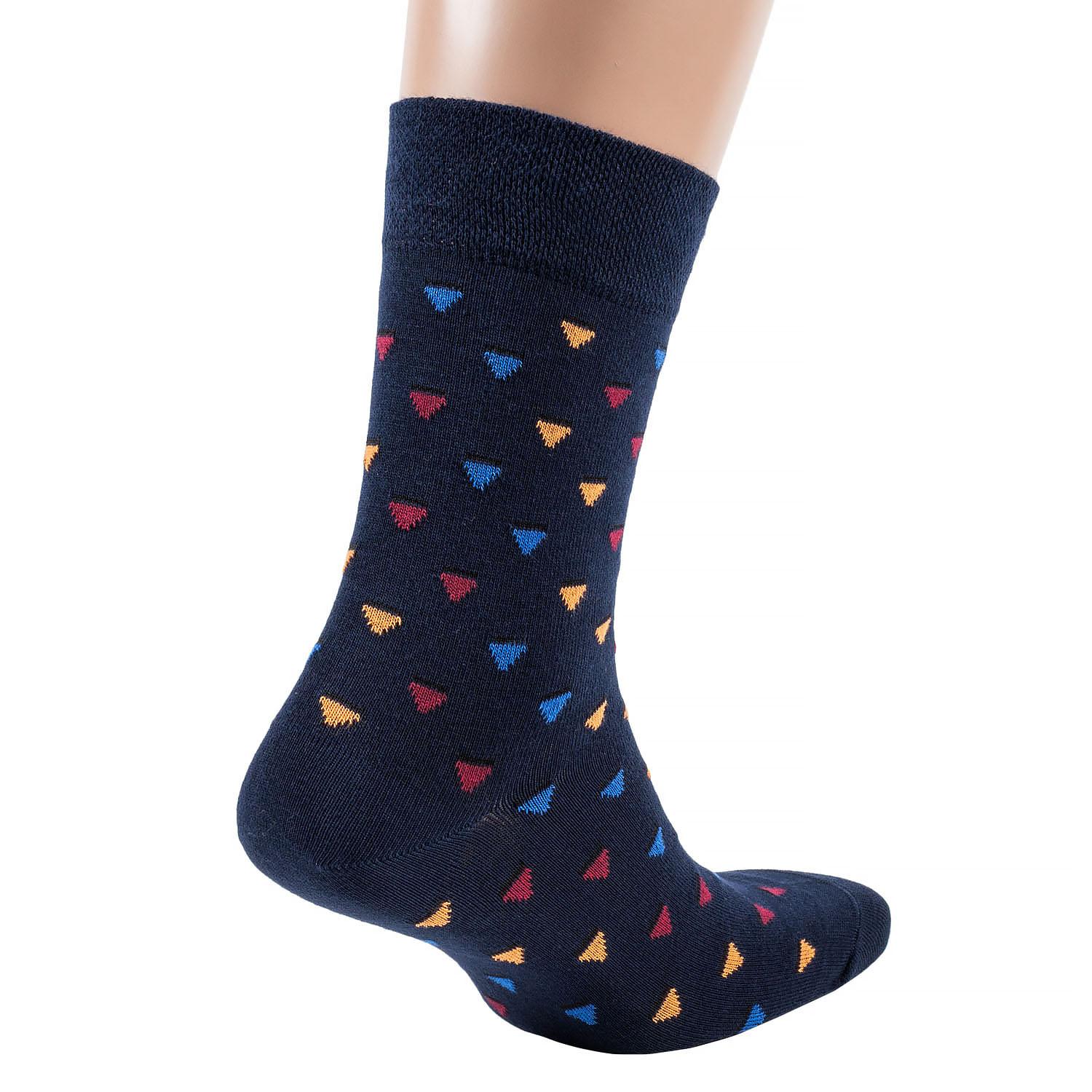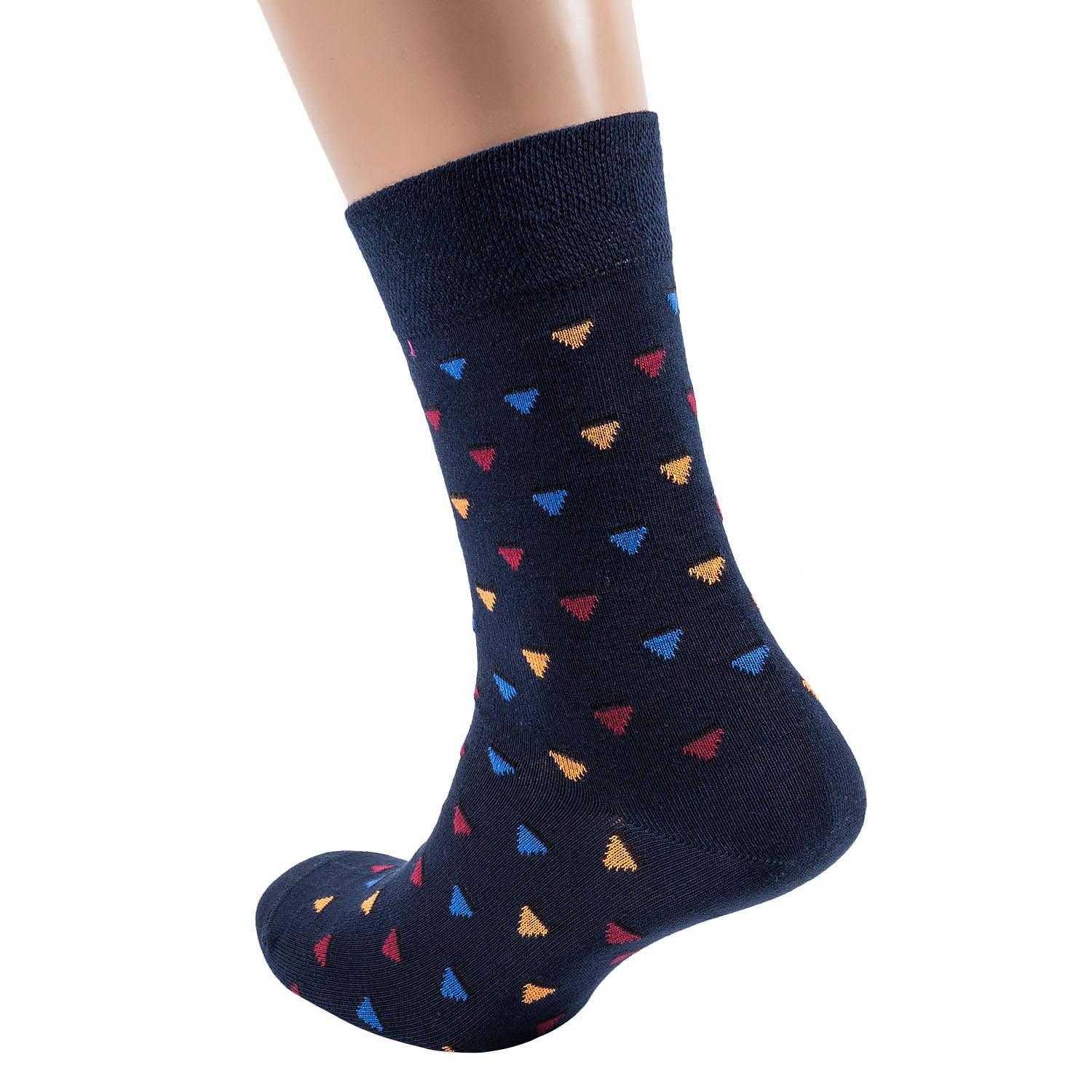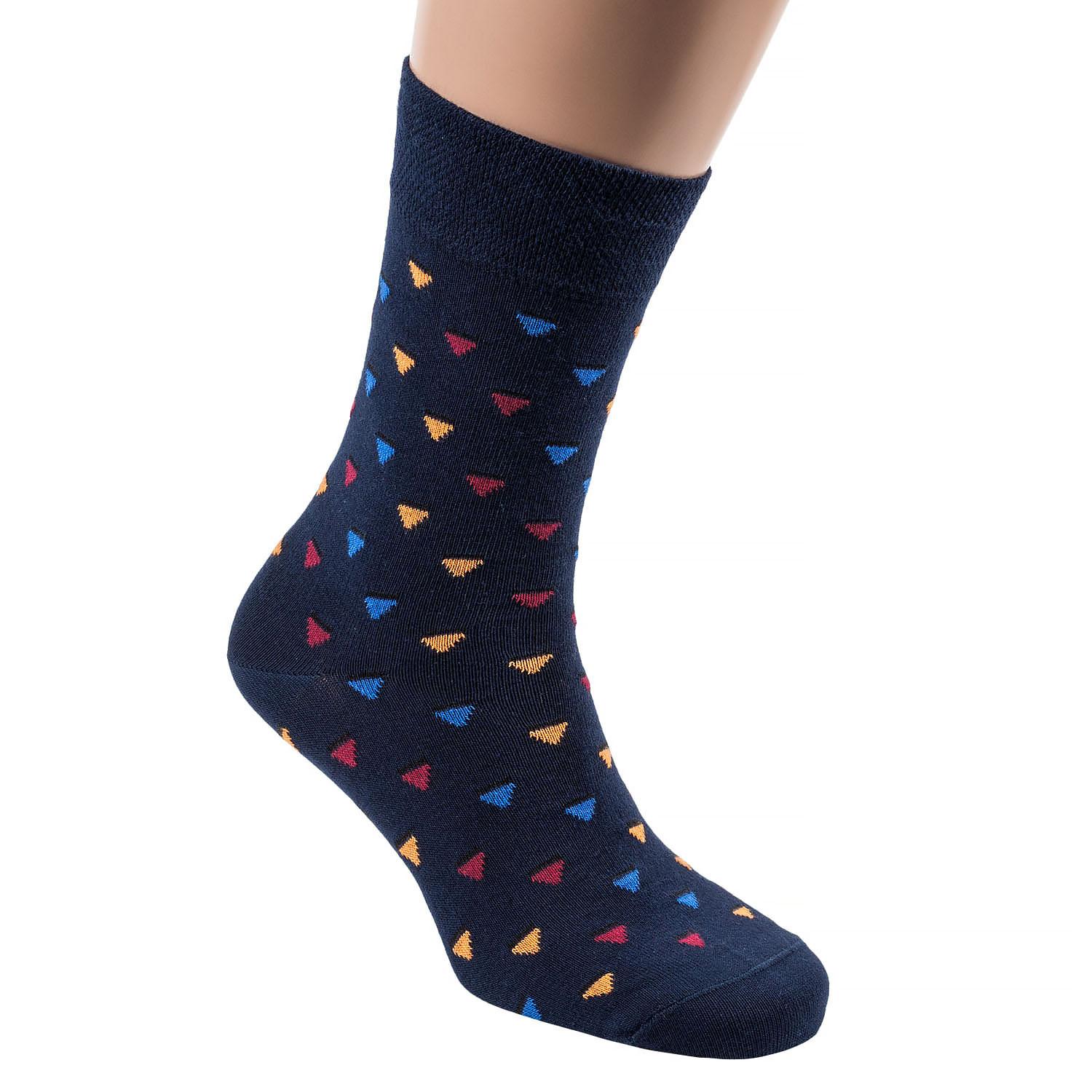 Оригинальные фантазийные носки классической длины. Они изготовлены из качественного трикотажа на основе хлопка и украшены разноцветными треугольниками. Такие носки отлично сочетаются с повседневной одеждой, а высокое качество делает их очень удобными.