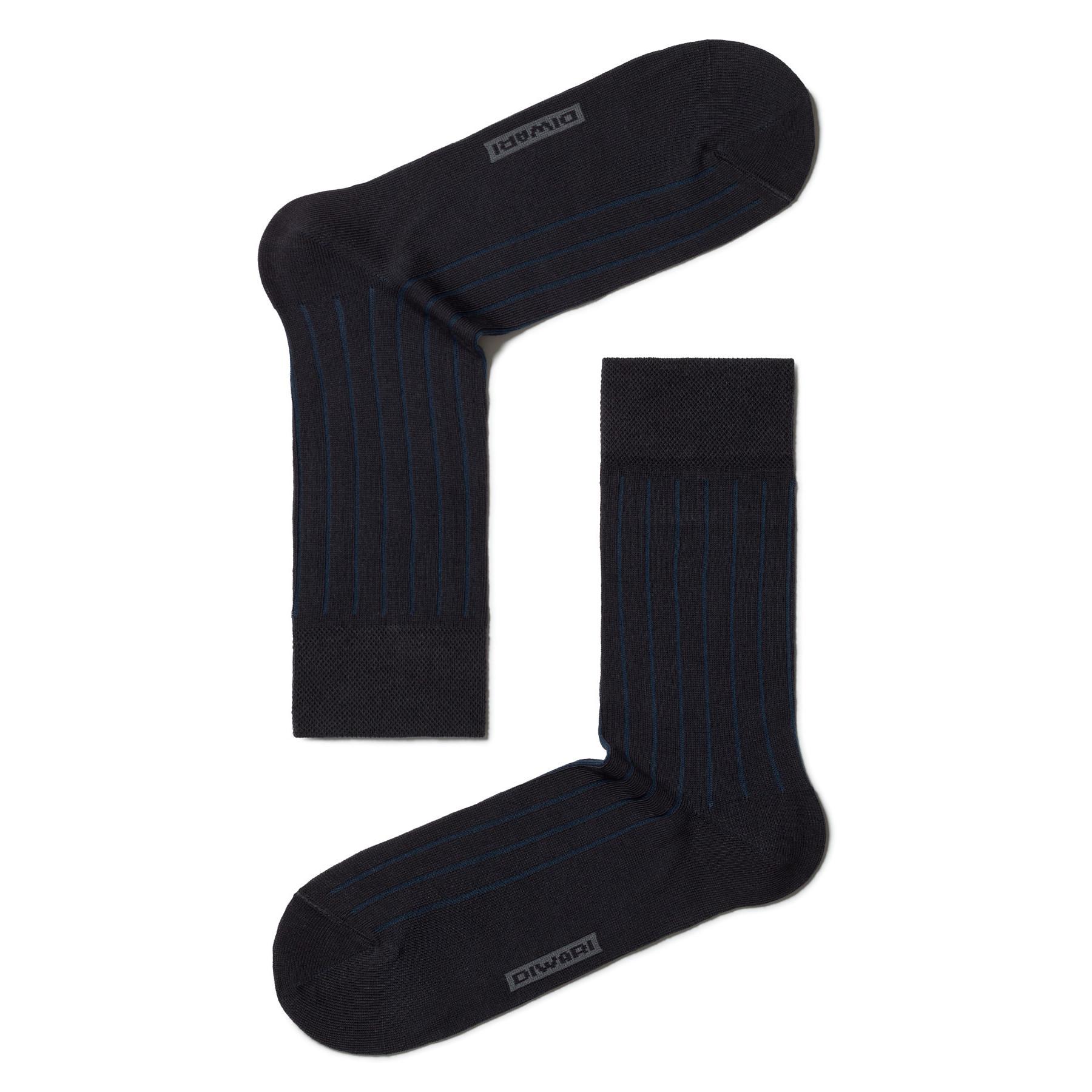 Круглогодичные средней длины мужские носки, цвет темно-серый, классические, шов кеттельный (бесшовная технология), принт (рисунок): полоски, в рубчик, с узором, состав: 69% хлопок, 32% полиамид, арт. 7С-43СП. Производитель «DiWaRi» Беларусь под брендом «Diwari».