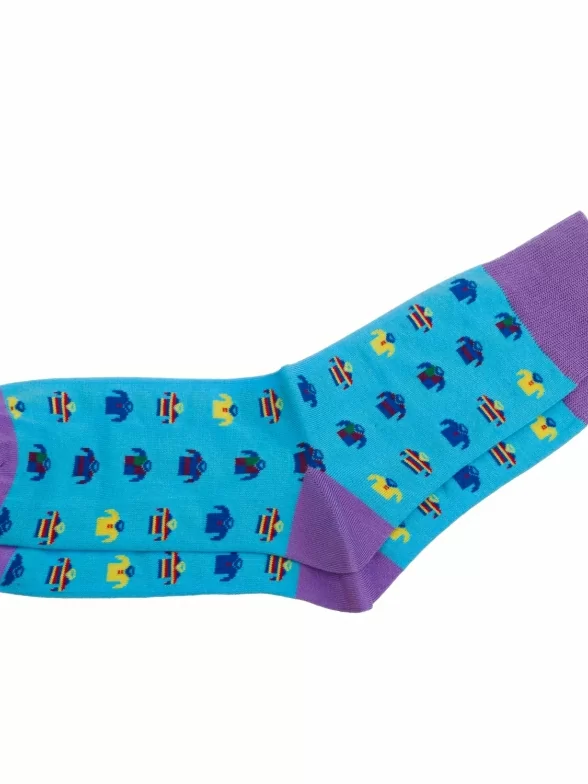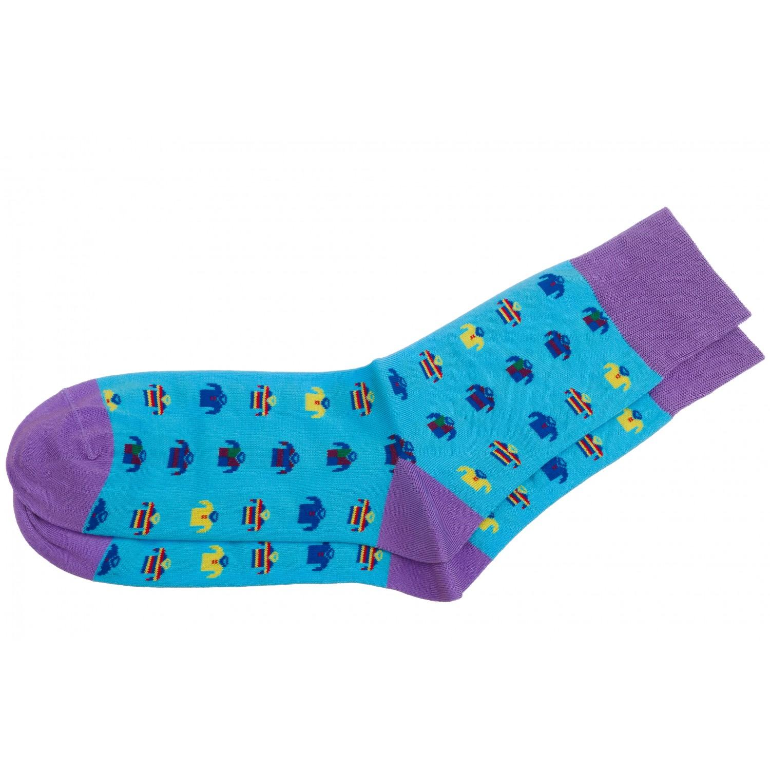 Стильные фантазийные носки из трикотажа на основе мерсеризованного хлопка. Они обладают повышенной износостойкостью, приятны к телу и отличаются особой фактурой. Яркий интересный узор, сочетающийся с контрастными деталями, смотрится оригинально и немного забавно.