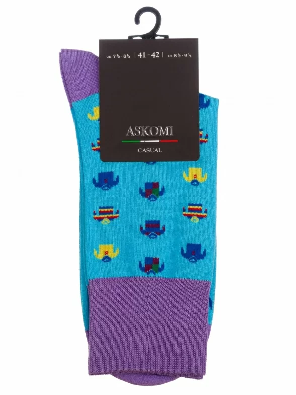 Мужские носки из мерсеризованного хлопка ASKOMI, АМ-6230, БИРЮЗОВЫЕ