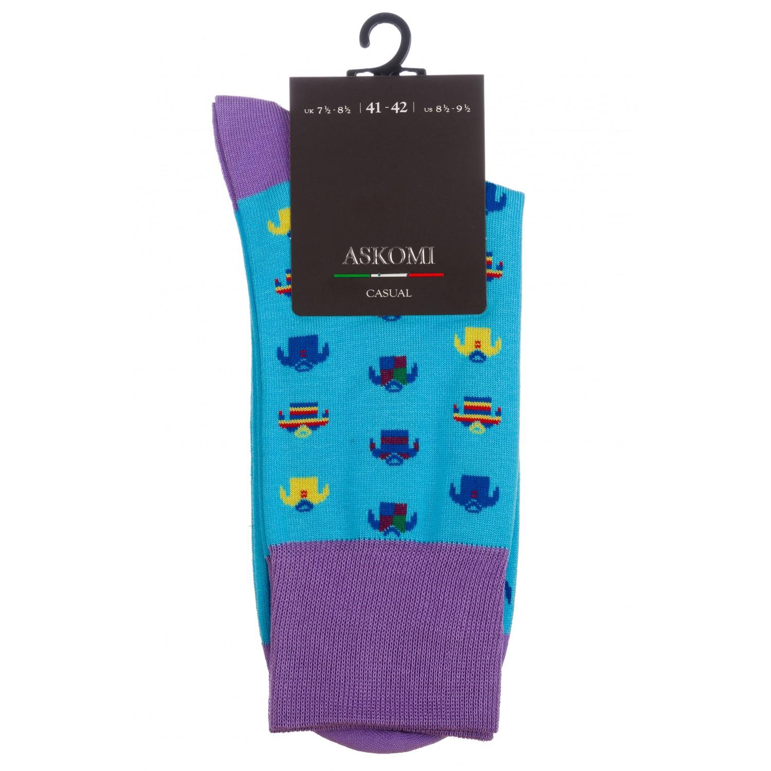 Мужские носки из мерсеризованного хлопка ASKOMI АМ-6230, БИРЮЗОВЫЕ