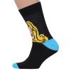 Круглогодичные средней длины мужские носки, цвет многоцветные (мультиколор)-черный, повседневные, шов обычный (не бесшовные), принт (рисунок): фильмы / сериалы / мультики, люди, крупные контрастные рисунки, с узором, состав: 82% хлопок, 15% полиамид, 3% эластан, арт. Nm-340. Производитель «ИП Рыбалкин В.С., Московская область, г. Щелково» под брендом «Msclub».